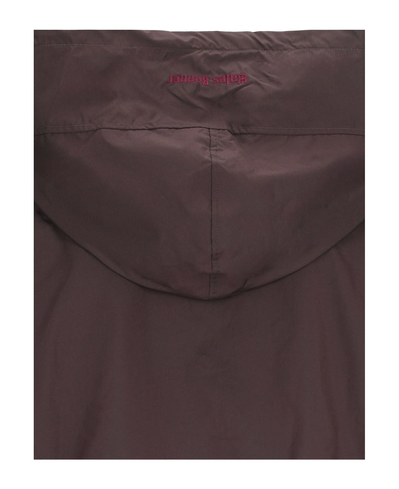Adidas x Wales Bonner 'Anorak' jacket, brown fabric, hooded design, drawstring, button closure, Trefoil logo embroidery on bottom, iconic red and black side bands, embroidered logo lettering hood, back button detail, elastic cuffs and hem.