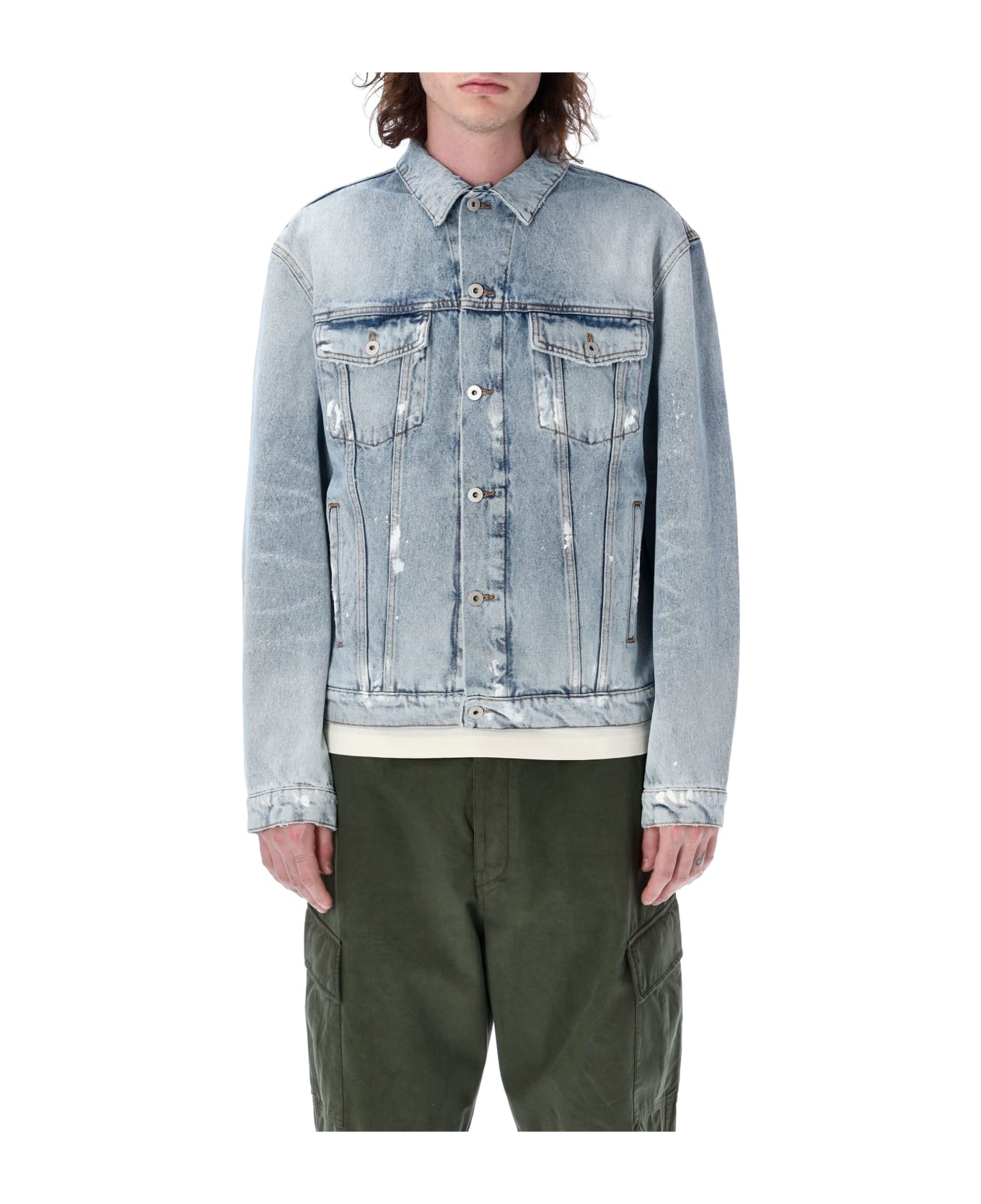 Cotton Regular Distressed Denim Jacket By Heron Preston. Featuring: Pointed Collar Buttons Closure Patch Flap Buttoned Pockets At Chest Side Slit Pockets Butten Cuffs Rear Logo Patch The Model Is 1,90 M Tall And He's Wearing Size L