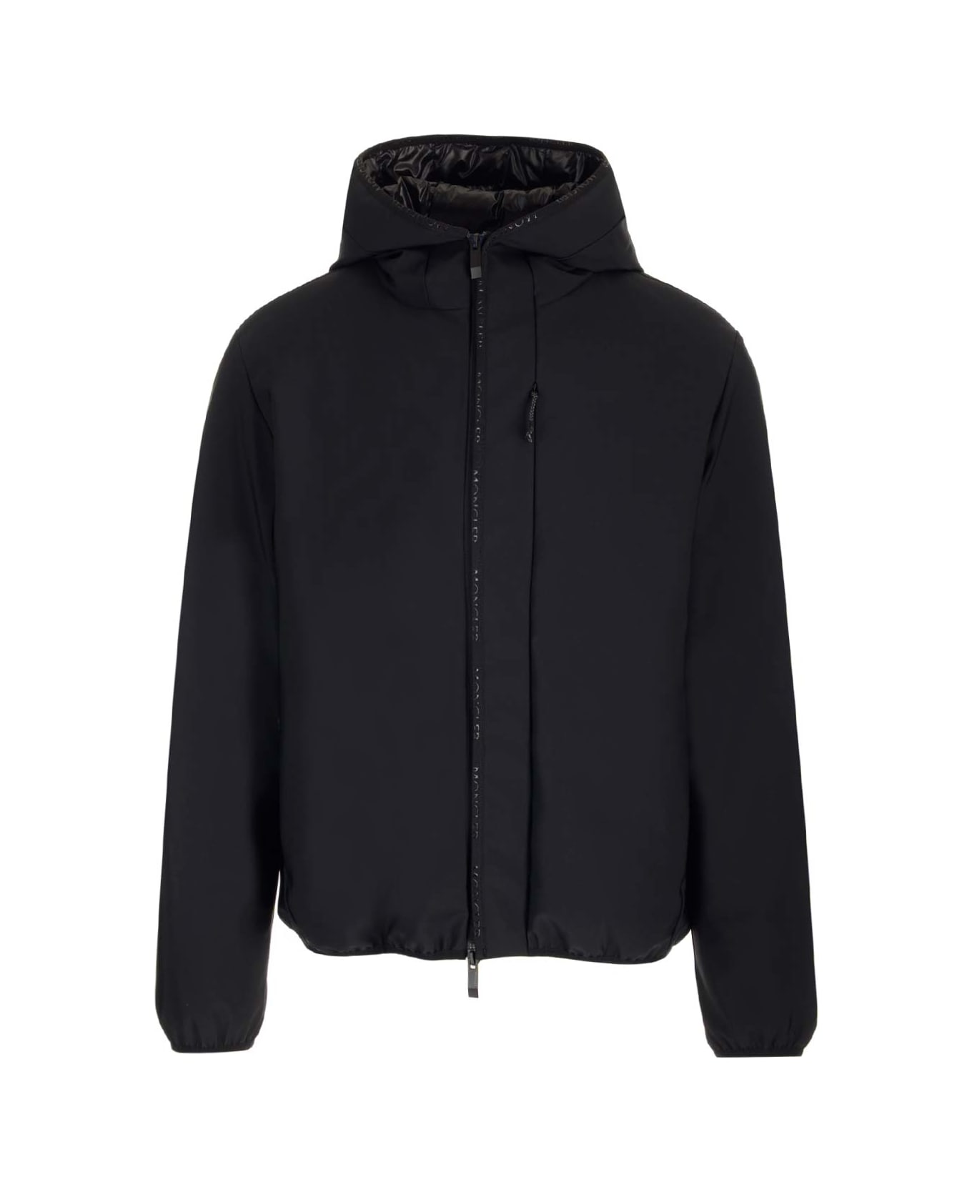 'Iton' jacket by Moncler in black technical fabric with zip closure and padded hood