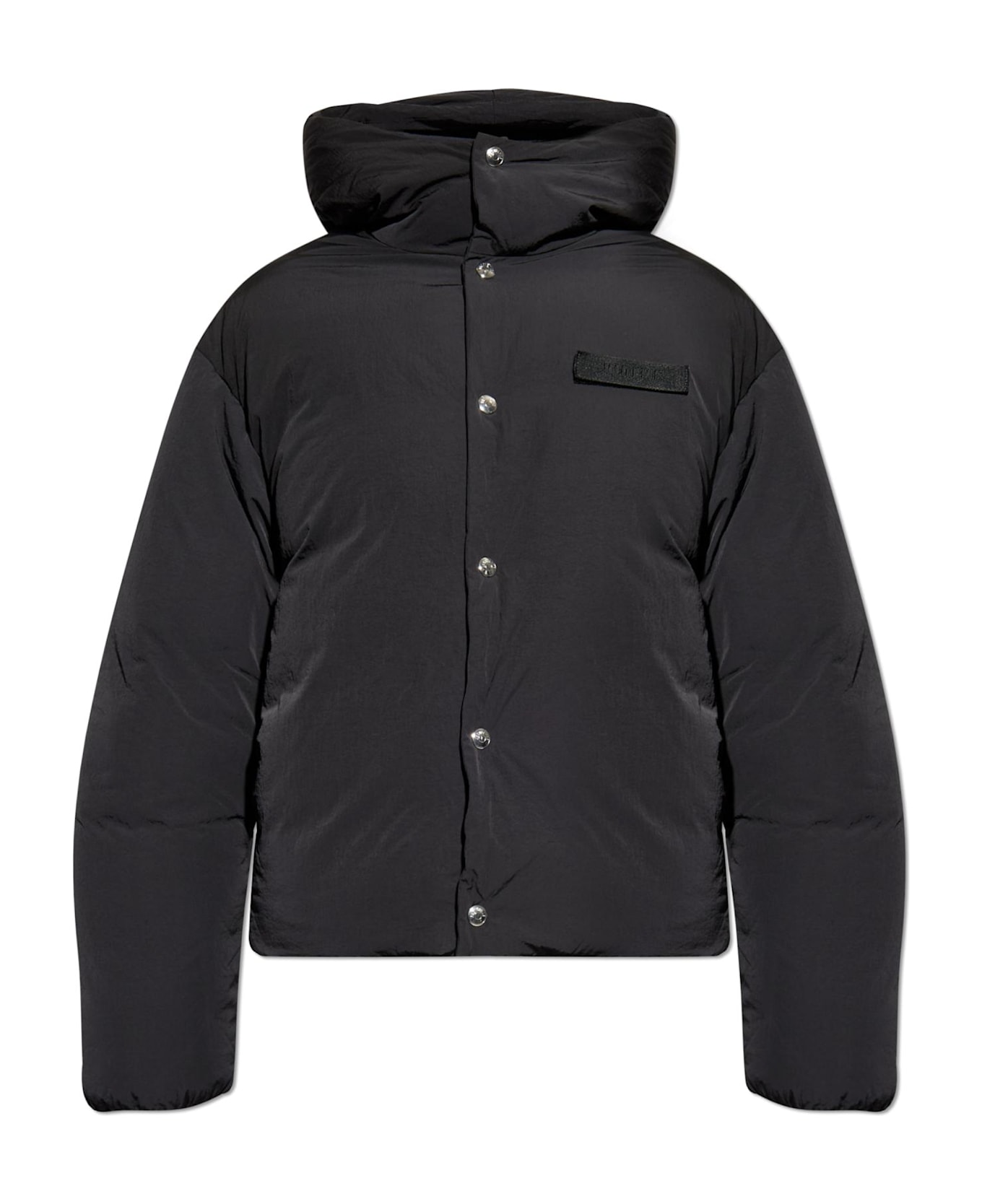 Experience refined sophistication with this insulated hooded puffer jacket by Jacquemus. Crafted from a matte, technical fabric with a subtly suede-like texture, it offers not only contemporary allure but also practical resilience against seasonal elements. The oversized, straight silhouette is elevated by wide sleeves and boldly contoured sides, providing both comfort and an unmistakably modern profile. The integrated hood features rounded lines, enhancing the jacket's sculptural aesthetic, while weather-resistant properties and plush insulation ensure reliable warmth throughout autumn and winter. Luxe details such as a front closure of oversized metal snaps and a distinctive, tonal
