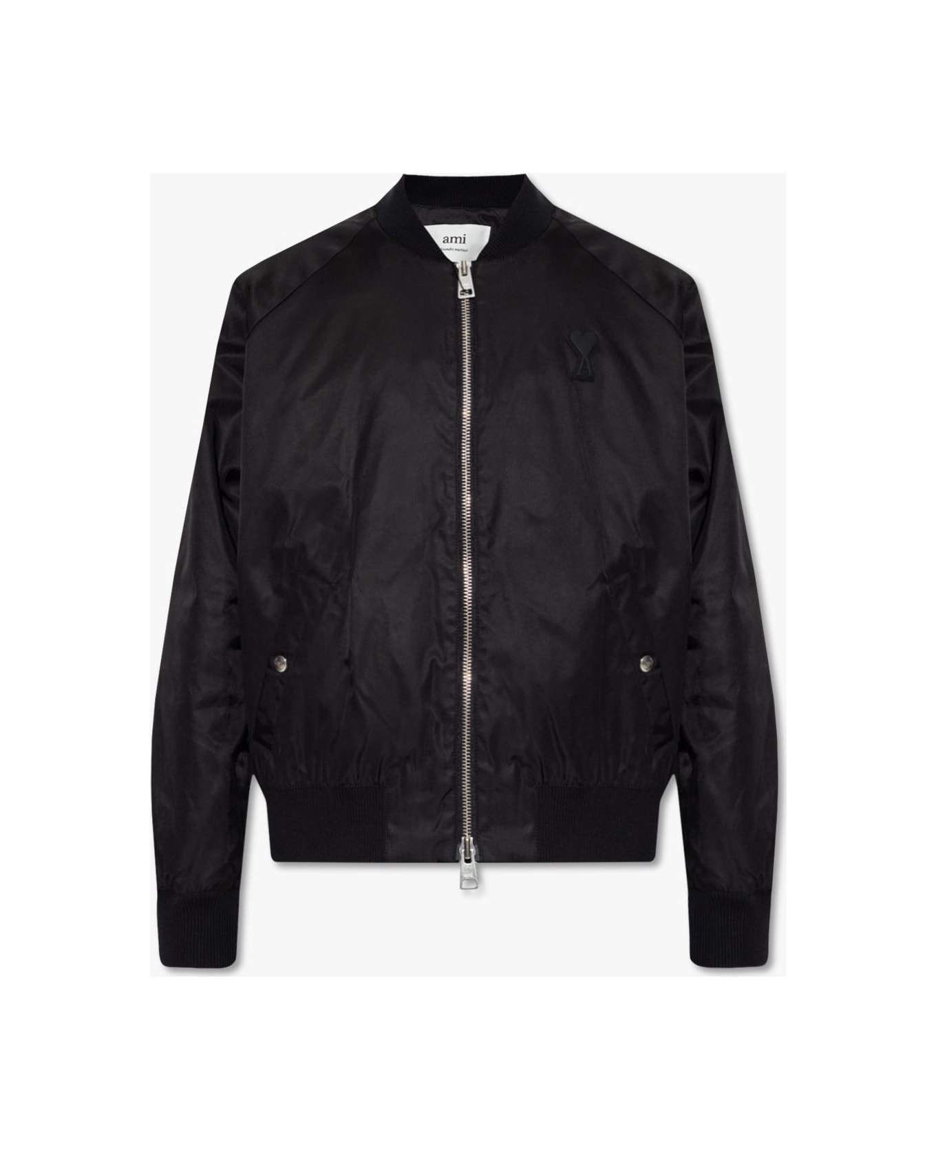 Black bomber jacket from Ami Alexandre Mattiussi. Emblazoned with a rubber 'Ami de Coeur' logo application, this style features a two-way zip fastening, two snap-fastened pockets and ribbed trims on the round neck, bottom hem and cuffs. Composition: 96% Polyamide 4% Polyurethane Composition: |