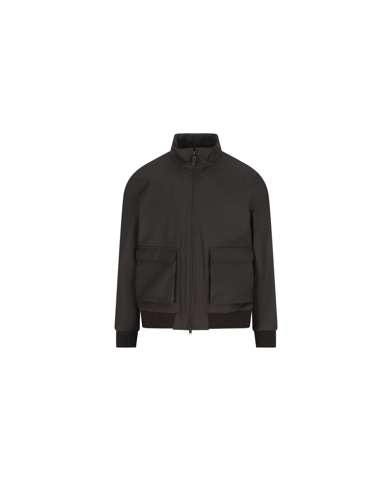 brown two front pockets zip-fastening knitted hem knitted cuffs high-neck