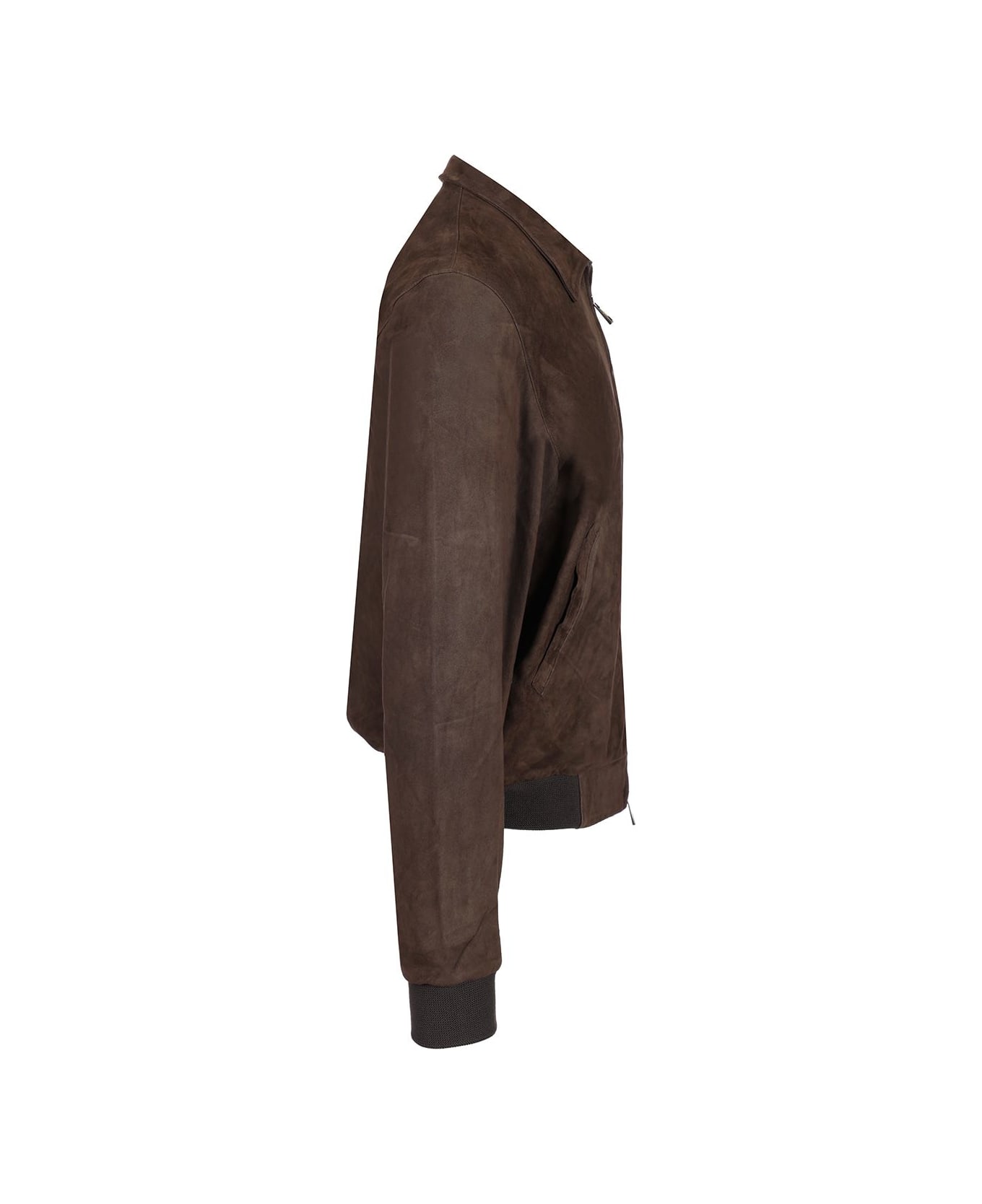 Brown suede nappa bomber jacket from Giorgio Brato, slim fit, shirt collar, knitted cuffs and low hem, zip closure.