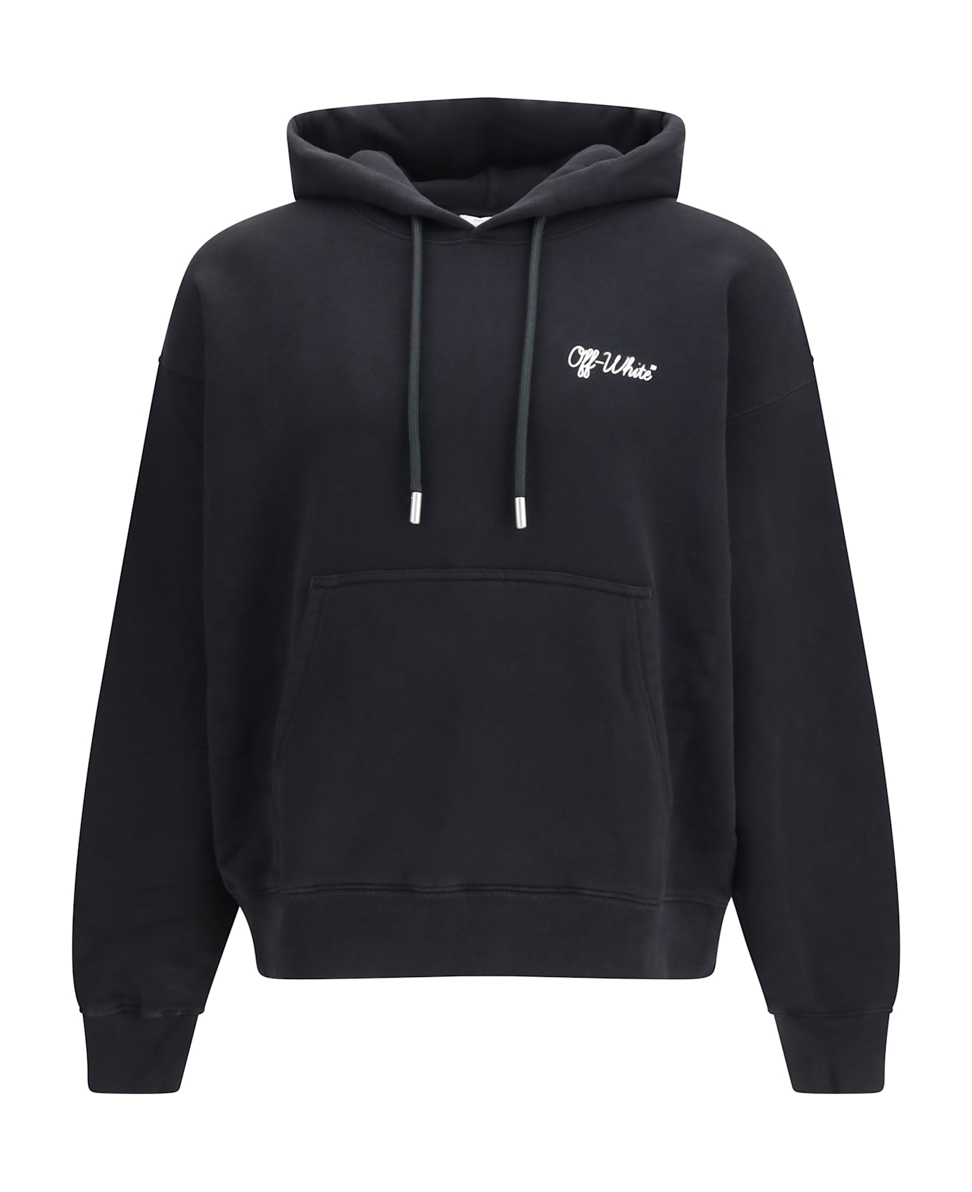 The script skate hoodie by off-white channels the brand s contemporary street aesthetic. designed in a relaxed skate fit, it features a small script logo on the front and a matching oversized version on the back for bold graphic impact. an iconic and versatile piece, perfect for completing casual looks with distinctive edge.