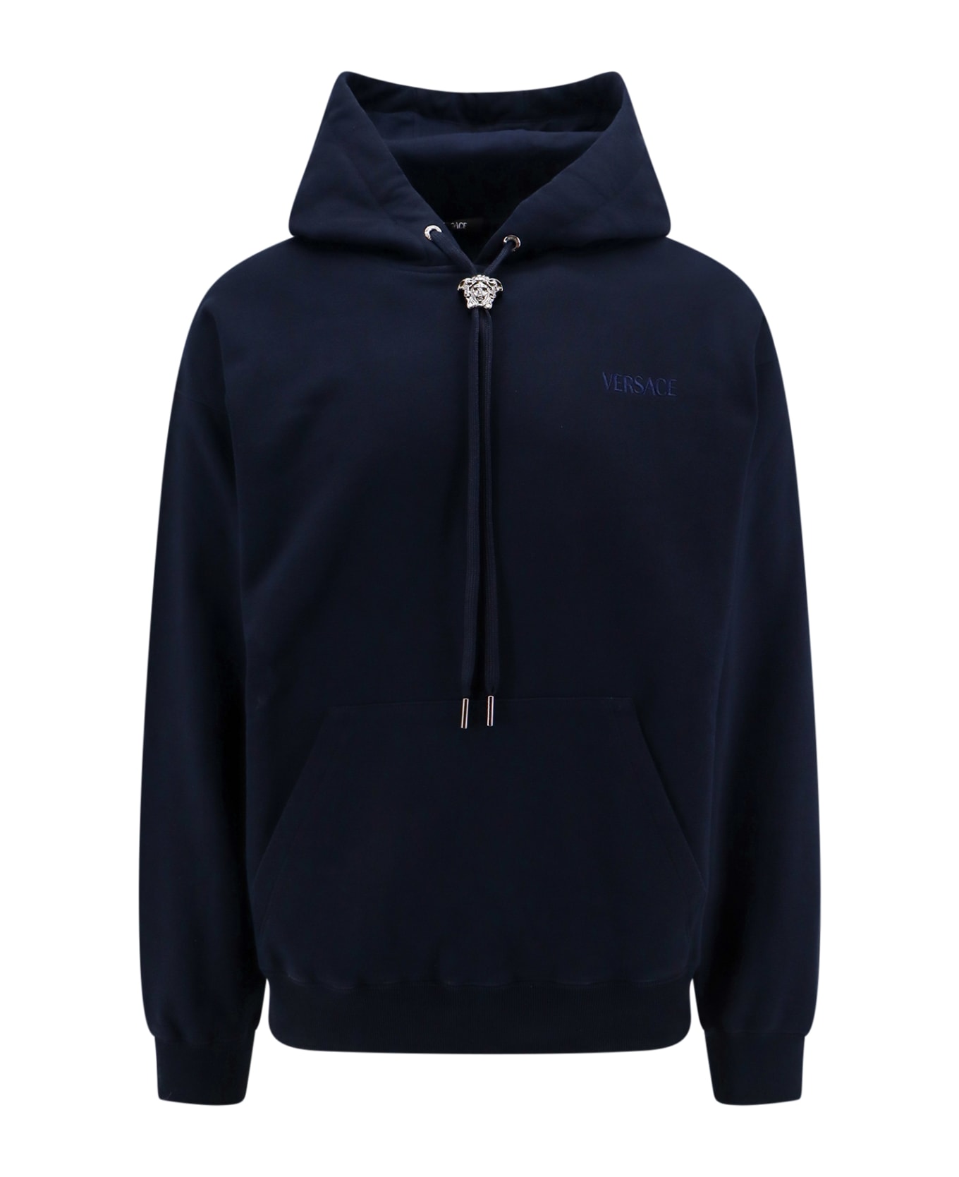 - Hood With Drawstring And Iconic Medusa Slider - Long Sleeve - Kangaroo Pocket On The Front - Ribbed Profiels - 100% Cotton