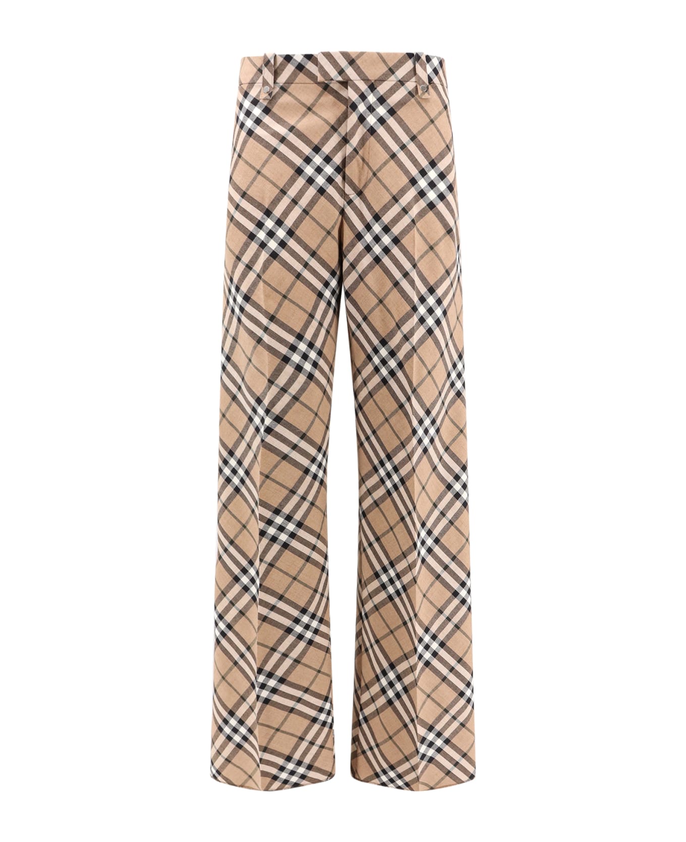 Wool blend trouser with iconic Check print - Closure With Zip And Metal Hook - Lateral Pockets With Zip - Wide Leg - Made In Italy - 55% Polyester 45% Wool