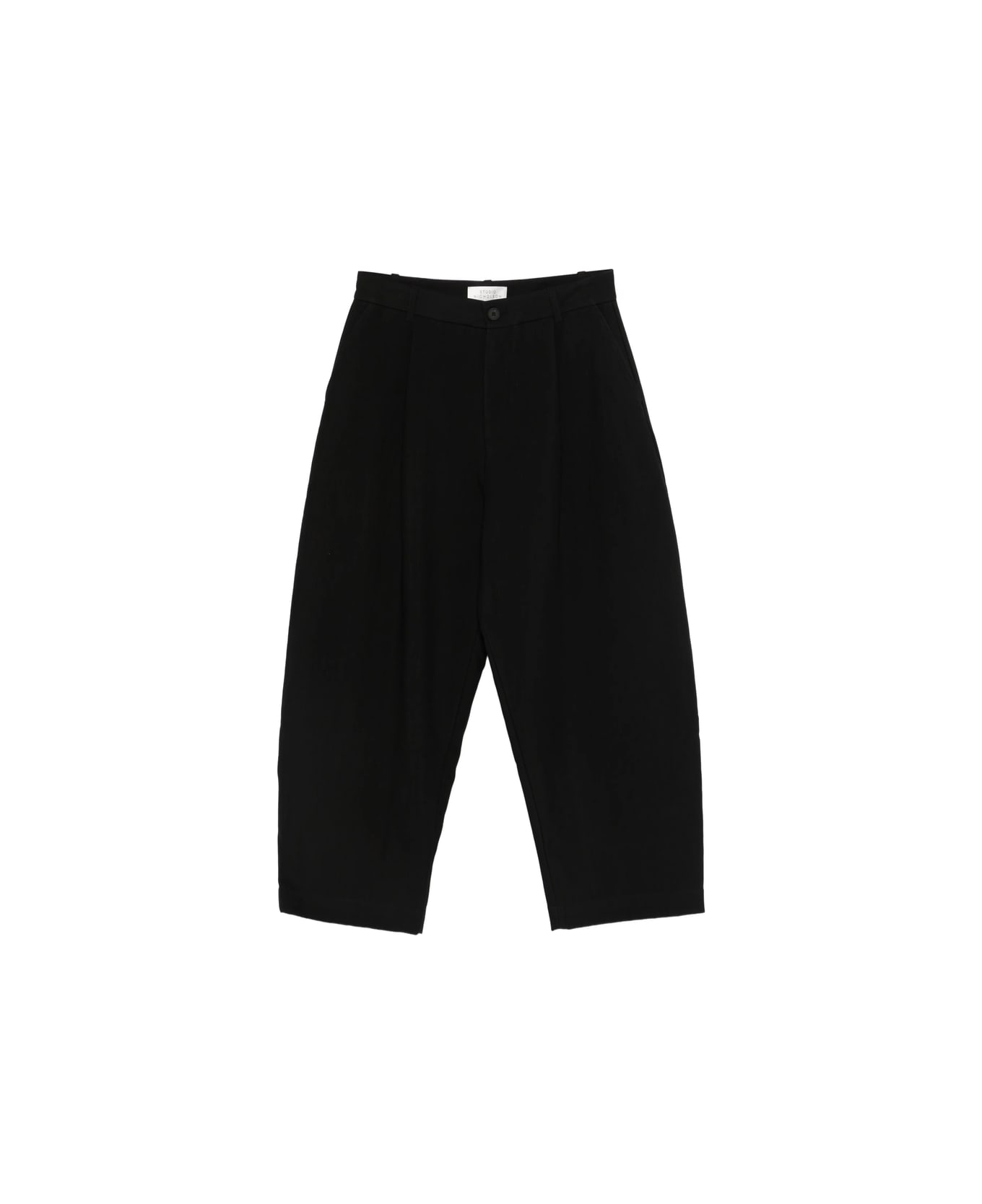 black front pleats button fastening belt loops side seam pockets back welt pocket