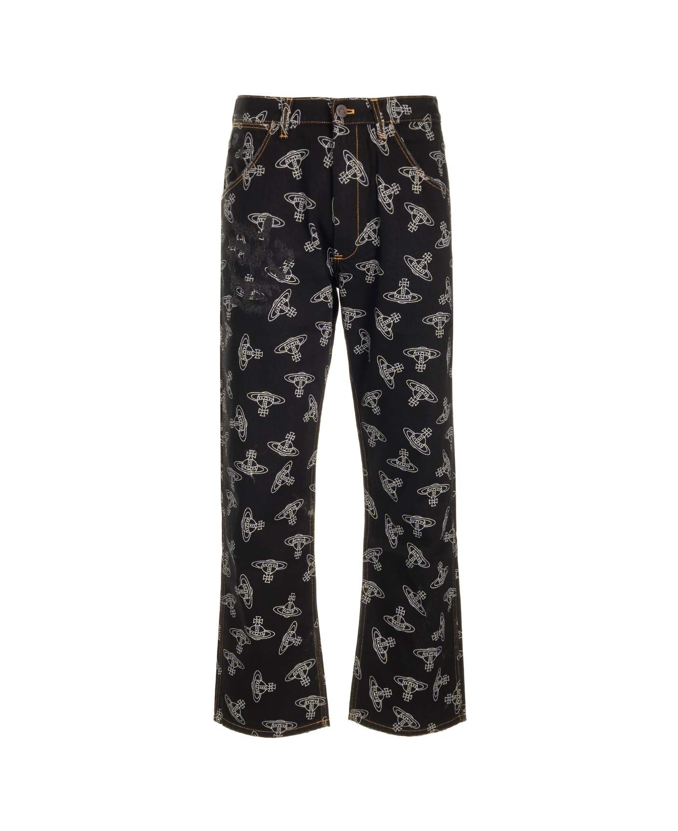 RANCH JEANS WITH ORB EMBROIDERY 5-pocket design Straight leg Orb-embossed button Silver-tone hardware Contrasting topstitch Belt loops Composition: 100% COTTON