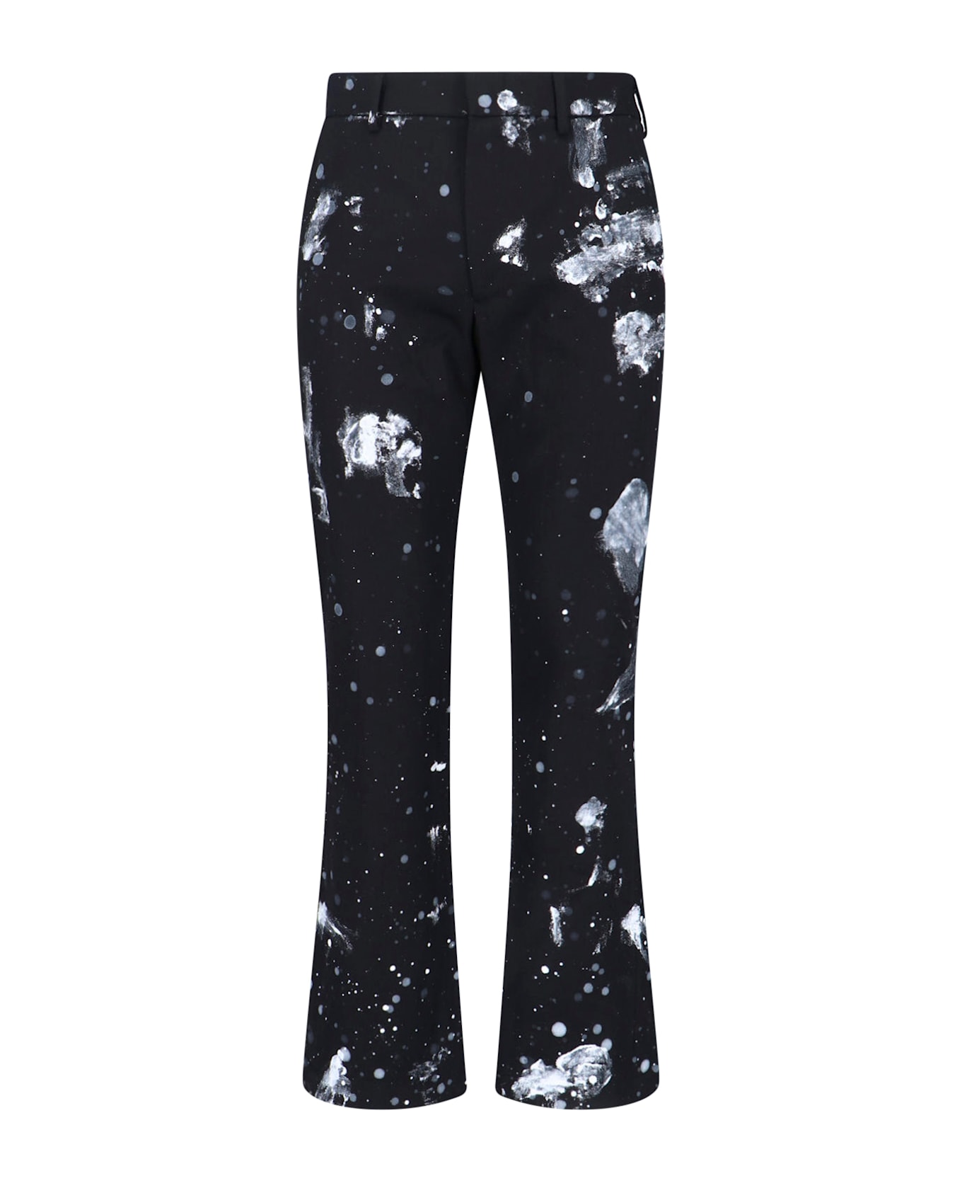 Gallery Dept. 'Thomas' tailored trousers in black virgin wool and cashmere blend, mid waist, belt loops, zip and hook closure, two side pockets, all-over contrast details, two back welt pockets, logo print at the back, flared leg.