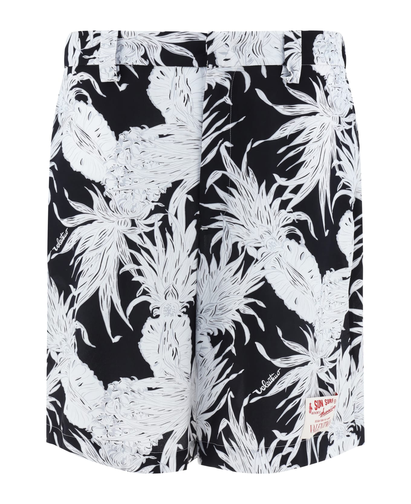 Silk shorts by valentino, elasticated waistband, front zipper and hook closure, two side welt pockets, two slit pockets on the back, fabric patch with iconic brand monogram embroidered on the front, all-over printed floral graphic pattern.