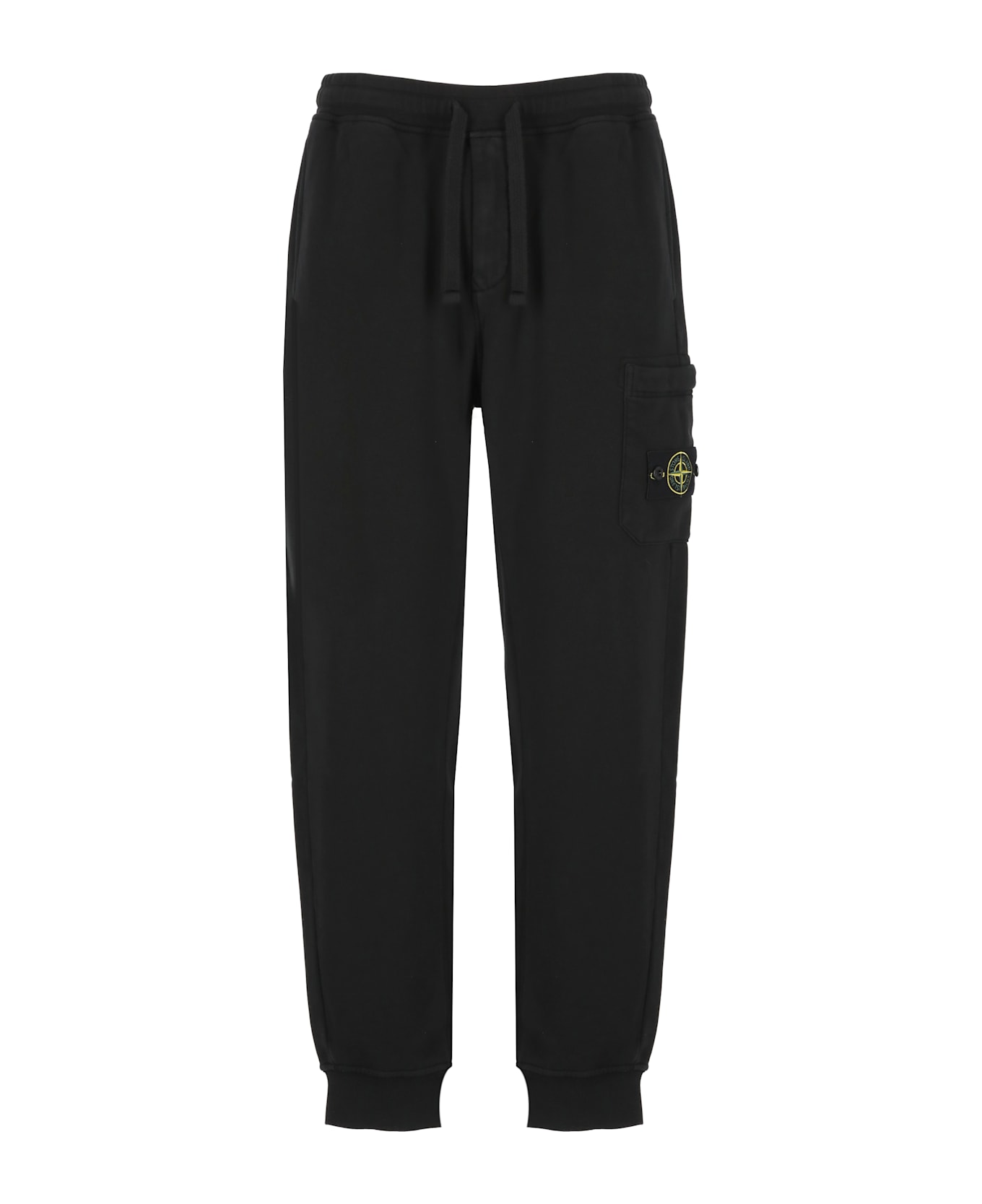 - Black Stone island cotton sweatpants for man - Elastic waist with drawstrings - Two side slit pockets - One rear welt pocket - One logoed zip pocket at left leg - Elastic hem Composition: 100% Cotton Ribbing:, 98% Cotton, 2% Elastane