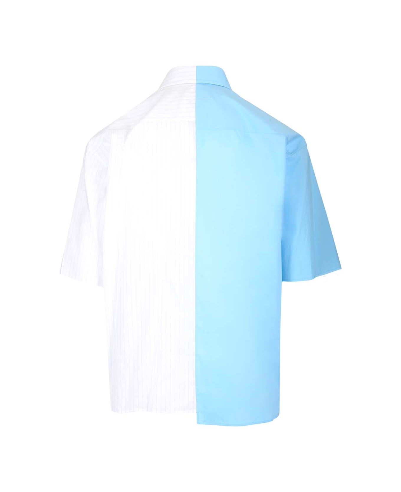 Camicia maniche corte asimmetrica in tessuto a righe e azzurro con stampa logo numeric over Composition: 100% cotton