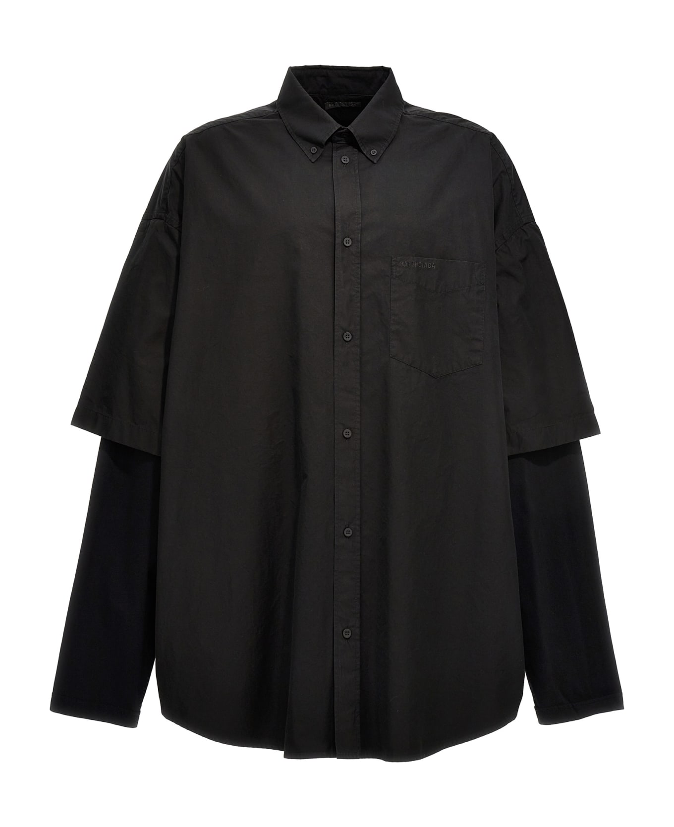 Oversize cotton shirt, with pocket with front logo embroidery, button closure, long sleeves and a short top layer.