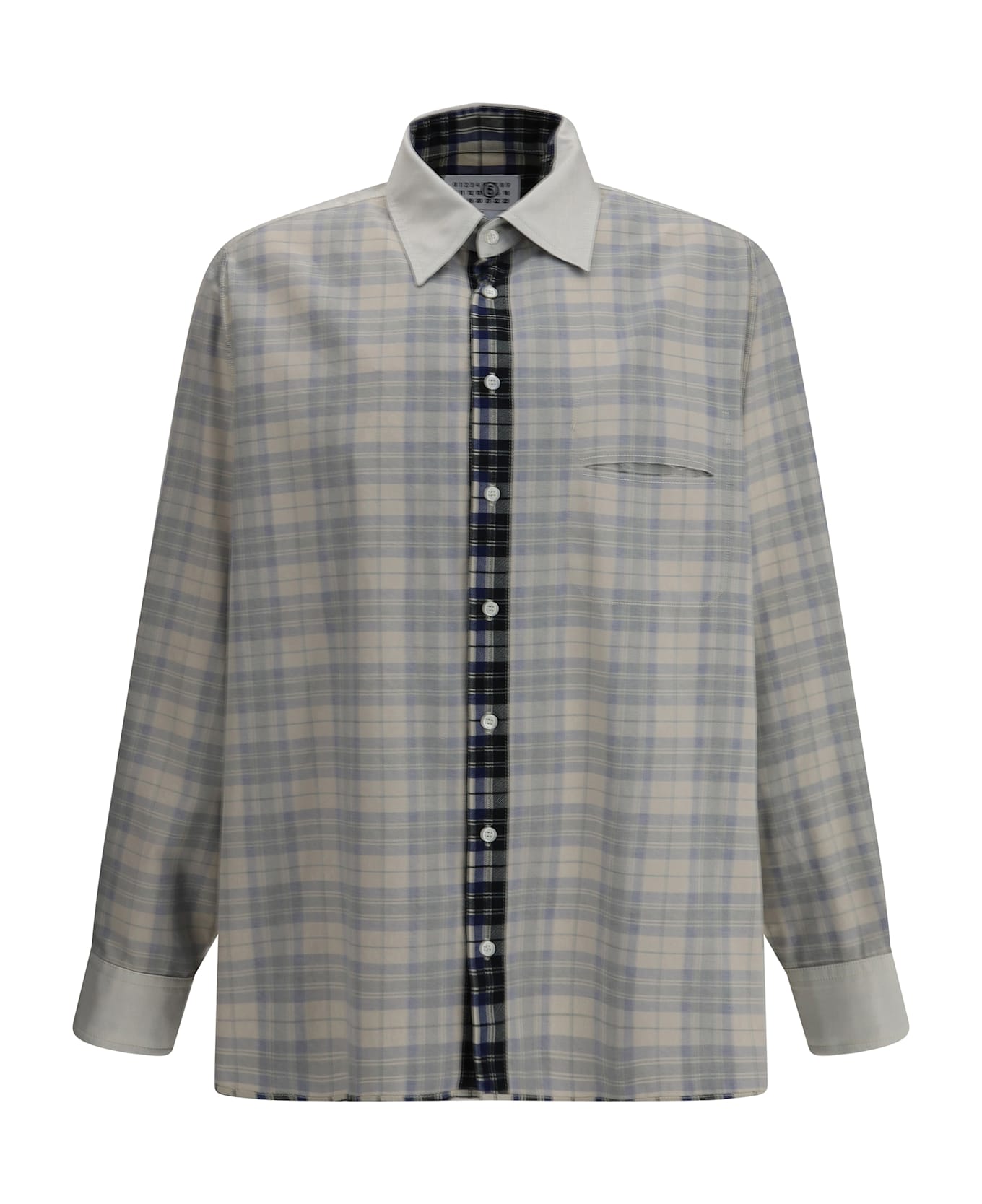 Mm6's cotton shirt is a versatile and modern garment, thanks to its reversible design. it features a classic collar and a front button closure. adjustable button cuffs add a touch of practicality, while a welt pocket on the front completes the look. on one side, the shirt sports a sophisticated check pattern, perfect for adding a touch of style to your wardrobe.