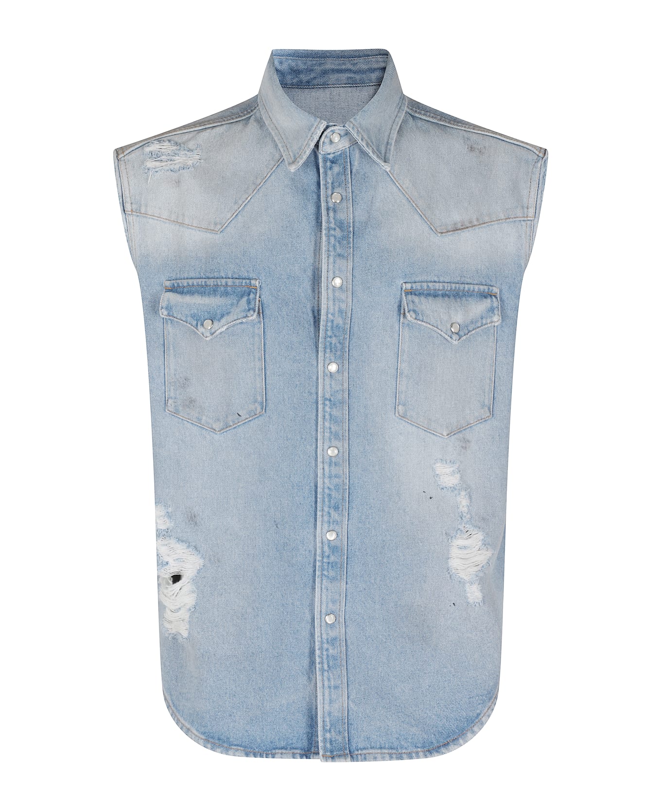 Vest - MM6 Maison Margiela - Short sleeved model - Light denim color - Vintage effect - Sleeveless - Two front flap and button pockets - Front snap button closure