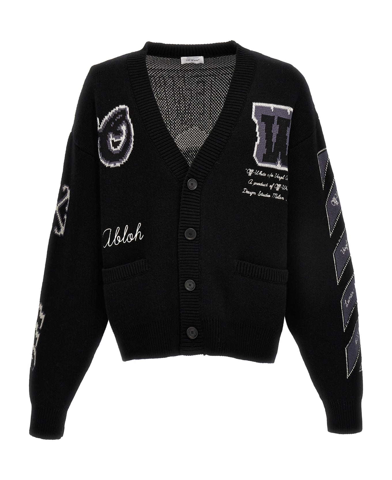 'Moon Varsity' wool blend cardigan with jacquard pattern and embroidery details, pockets, long cuffed sleeves, button closure.