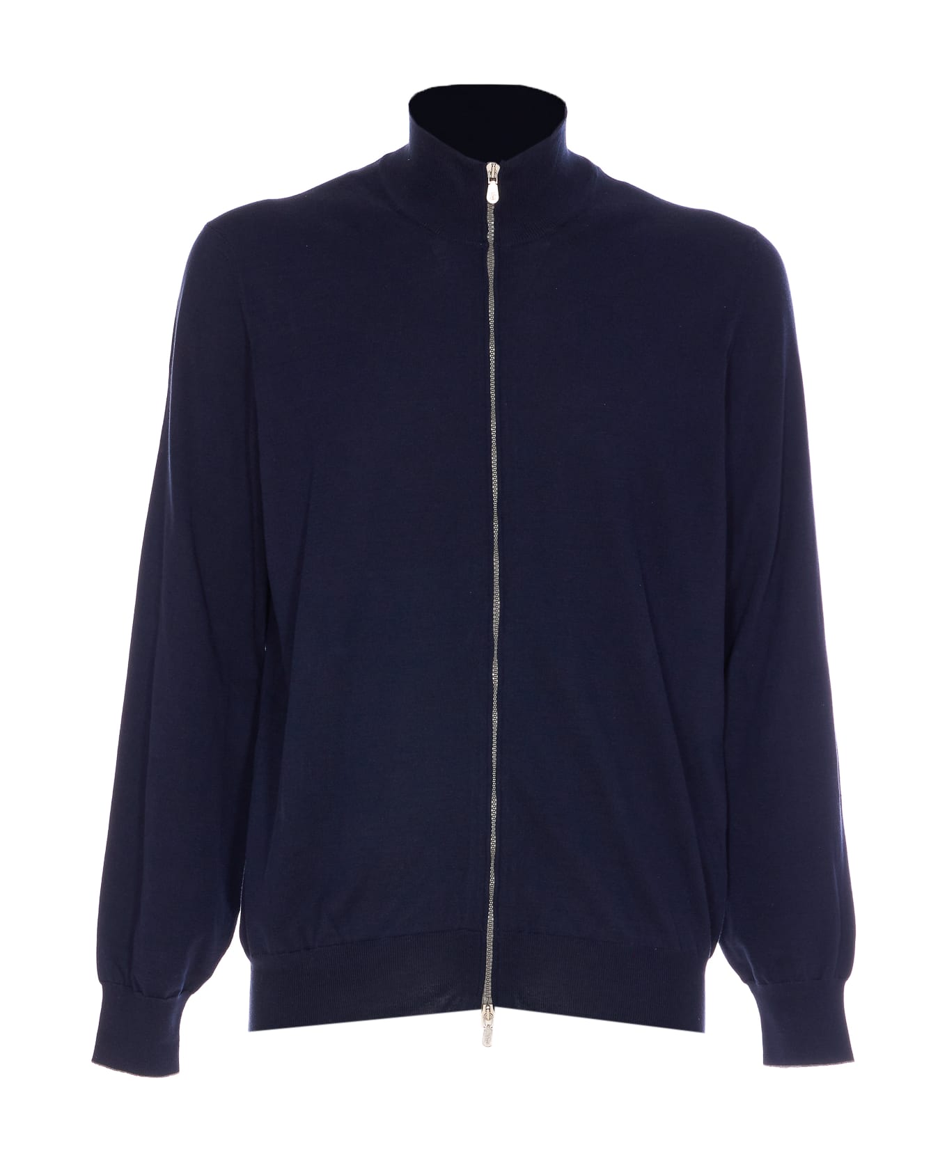 Brunello Cucinelli blue cardigan with zip closure, high neck, long slevees, pockets Composition: 100% Cotton