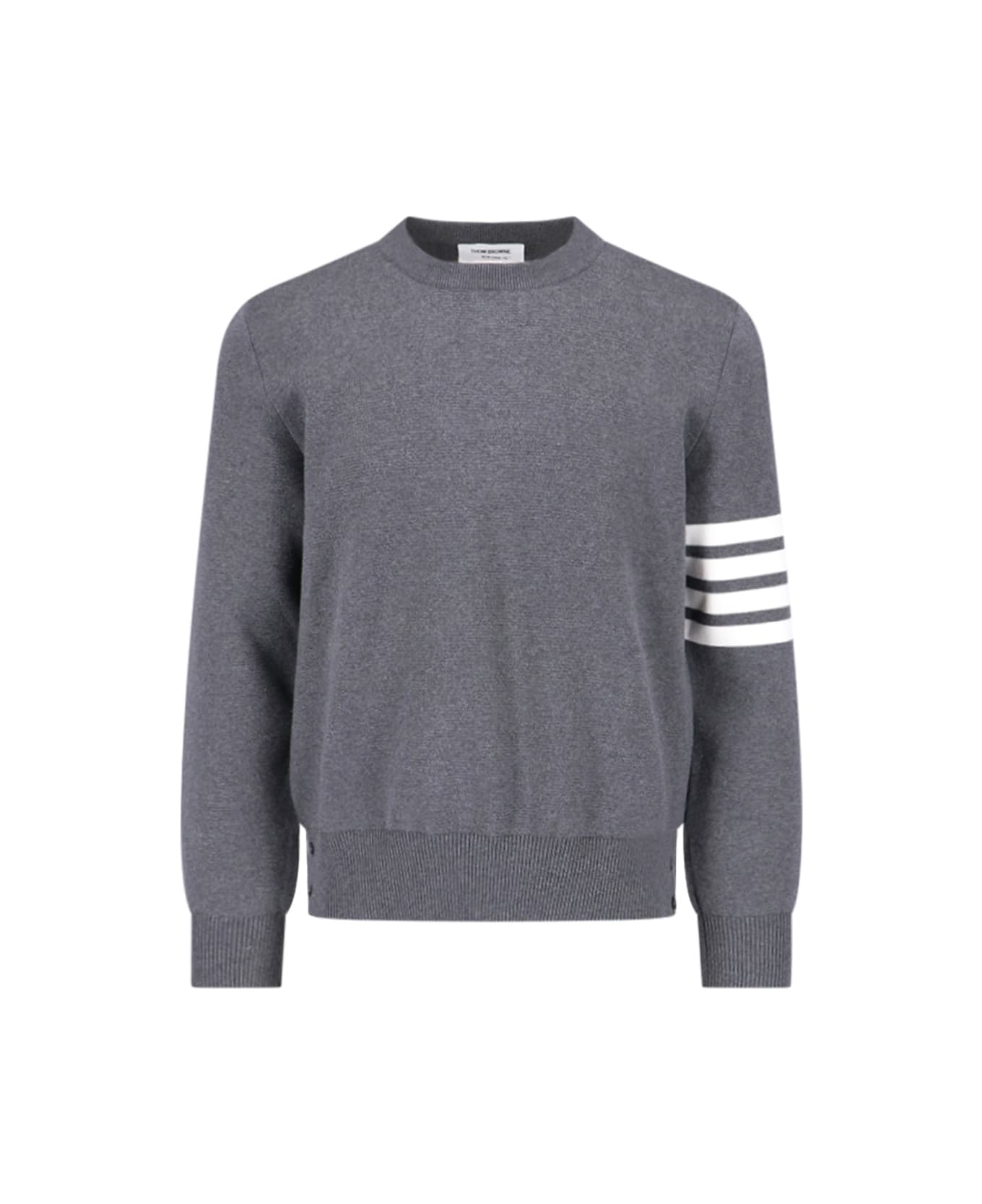 Thom Browne '4-Bar' grey cotton sweater with crew neck, iconic grey striped intarsia sleeves, tricolor grosgrain tongue at the back, buttons on cuffs and hem, ribbed trims, straight hem. Composition: 100% Cotton