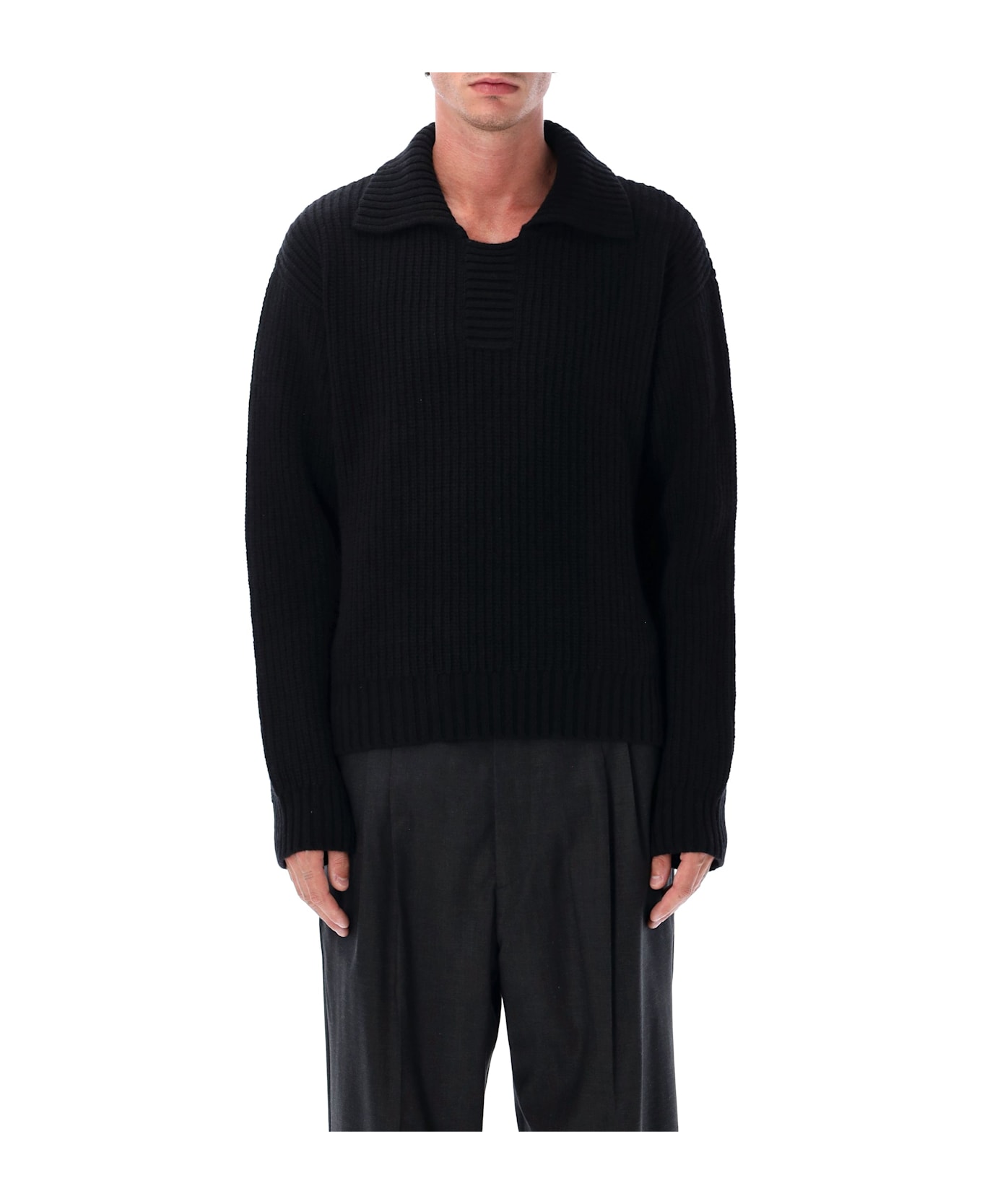 This Collar Sweater By Mfpen Is Knitted In 100% Wool With A Structured Ribbed Texture And Soft Volume. The Open Collar Neckline And Dropped Shoulders Add Casual Refinement To A Classic Silhouette, Ideal For Layering Through The Colder Seasons. Ribbed Wool Knit Relaxed Fit With Straight Hem Open Collar Neckline Long Sleeves Dropped Shoulders Andrea Is 1,90 M And Wears Size L