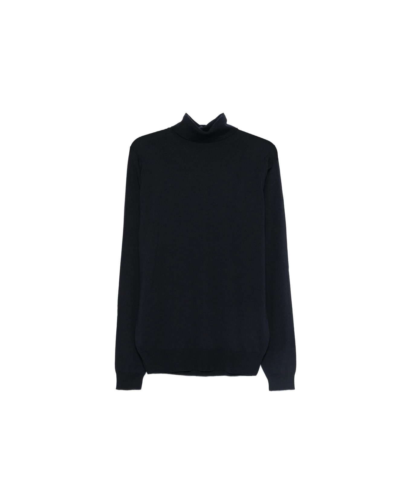 dark blue roll neck long sleeves fine knit straight hem chest detail