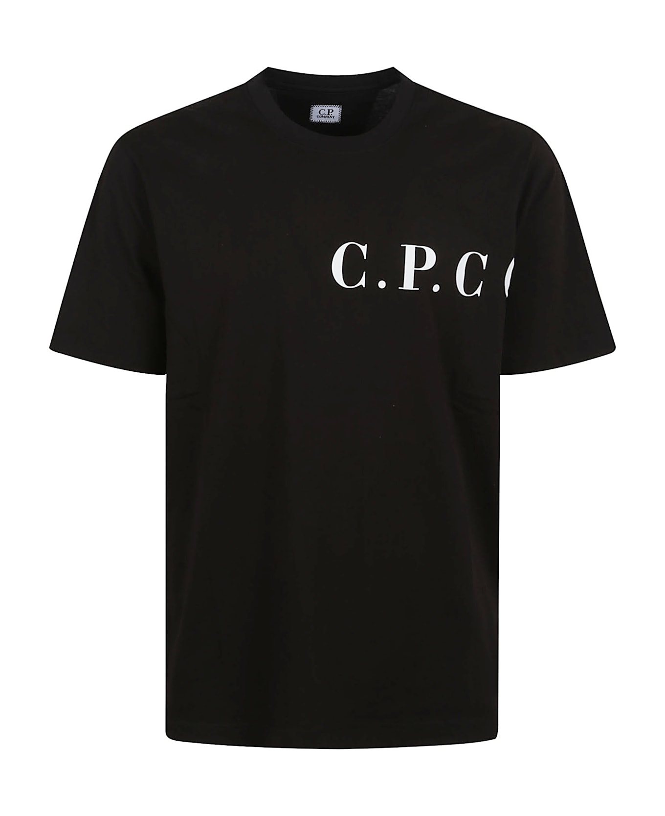 Cotton jersey T-shirt by CP COMPANY. Ribbed crewneck; short sleeve; regular fit design. Features Printed logo on chest and back.