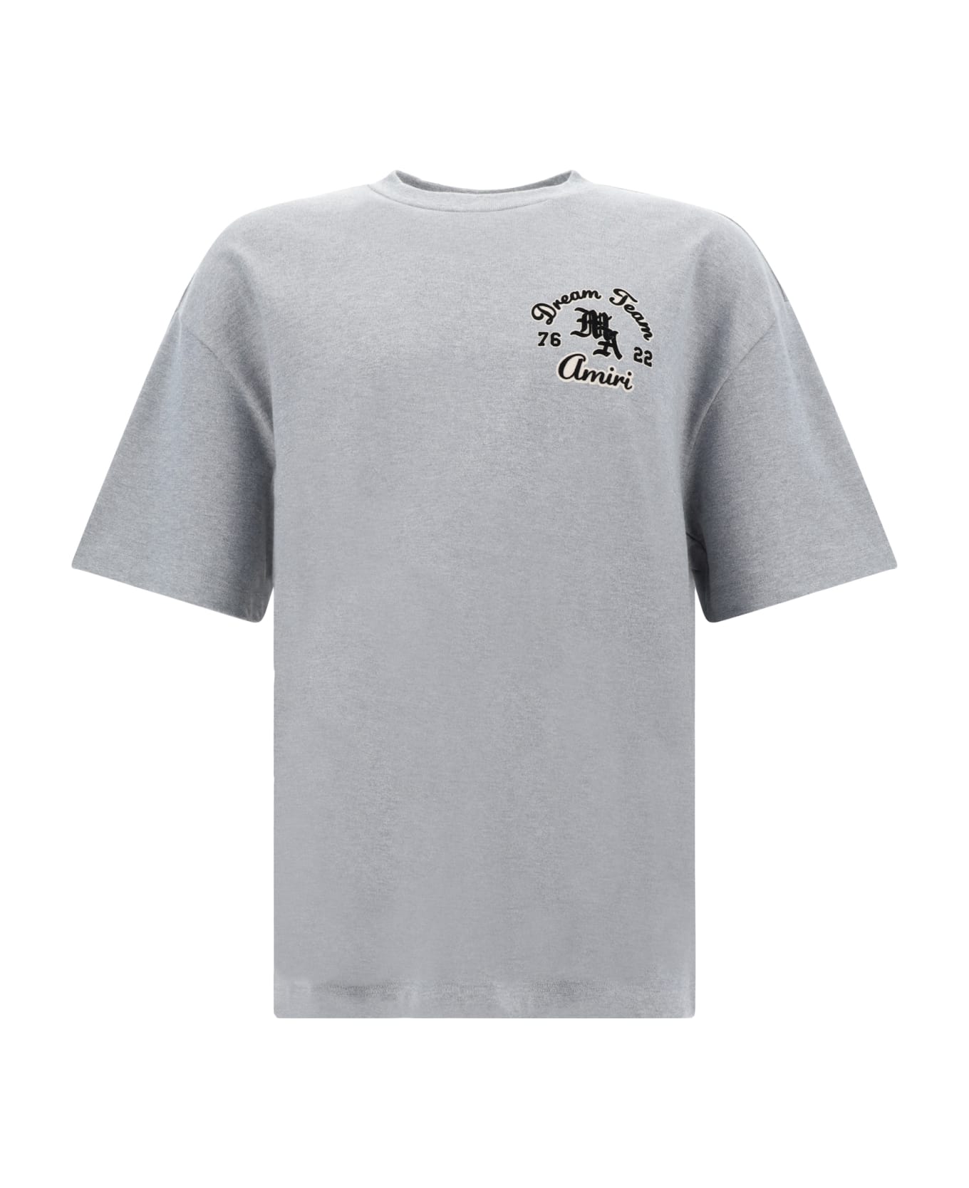 Cotton dream team t-shirt by amiri, featuring ribbed crew neck, iconic brand monogram contrasting front and back, monochrome pattern, regular fit.
