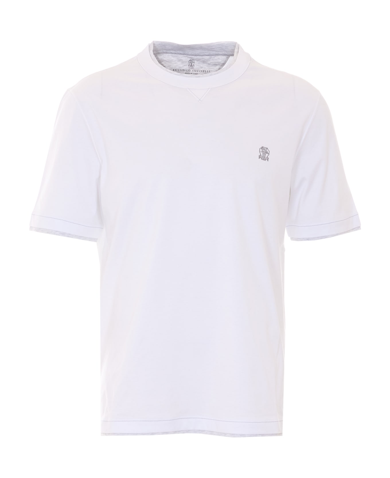Brunello Cucinelli white t-shirt, crewneck, embroidered logo on the front Composition: 100% Cotton