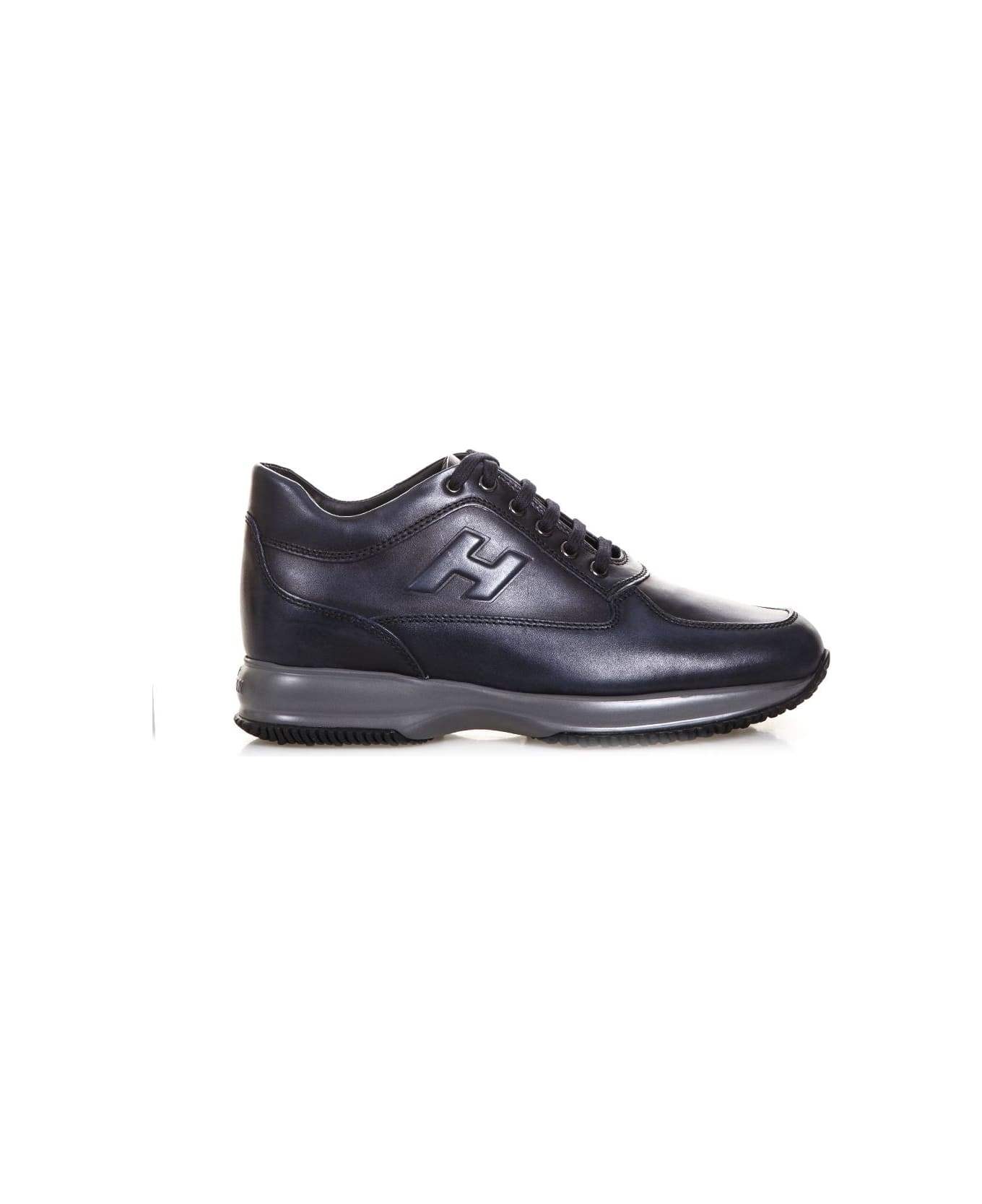 Blue Interactive Biro Blue Leather Sneakers from Hogan -Leather upper -Visible stitching -Side Hogan monogram -Rubber sole -2cm removable insole -Made in Italy -Designer dustbag included -Made in Italy -Color: Biro blue -100% Calfskin