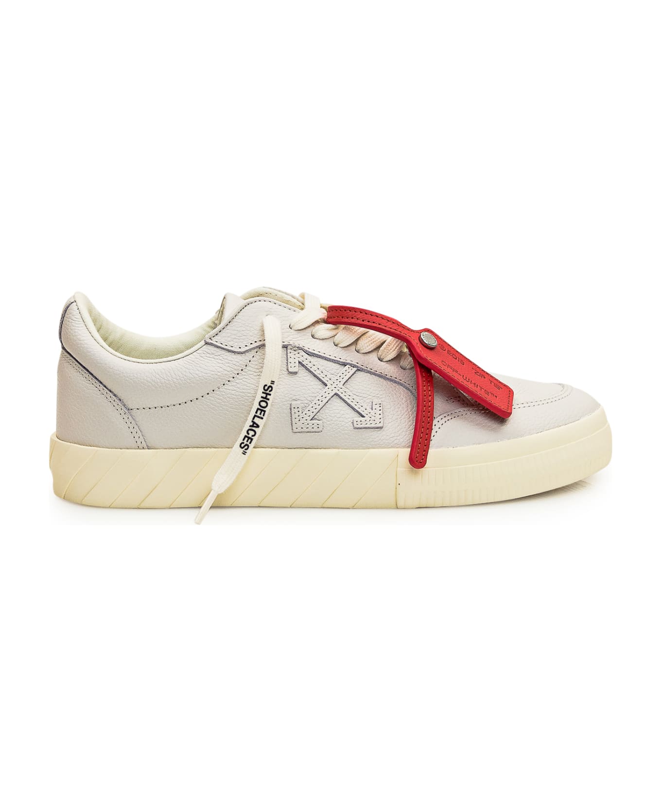 Low sneaker cream color. Closure with laces. Arrow side. Red leather Zip-Tie label. Writings on the tongue. Logo on the side.