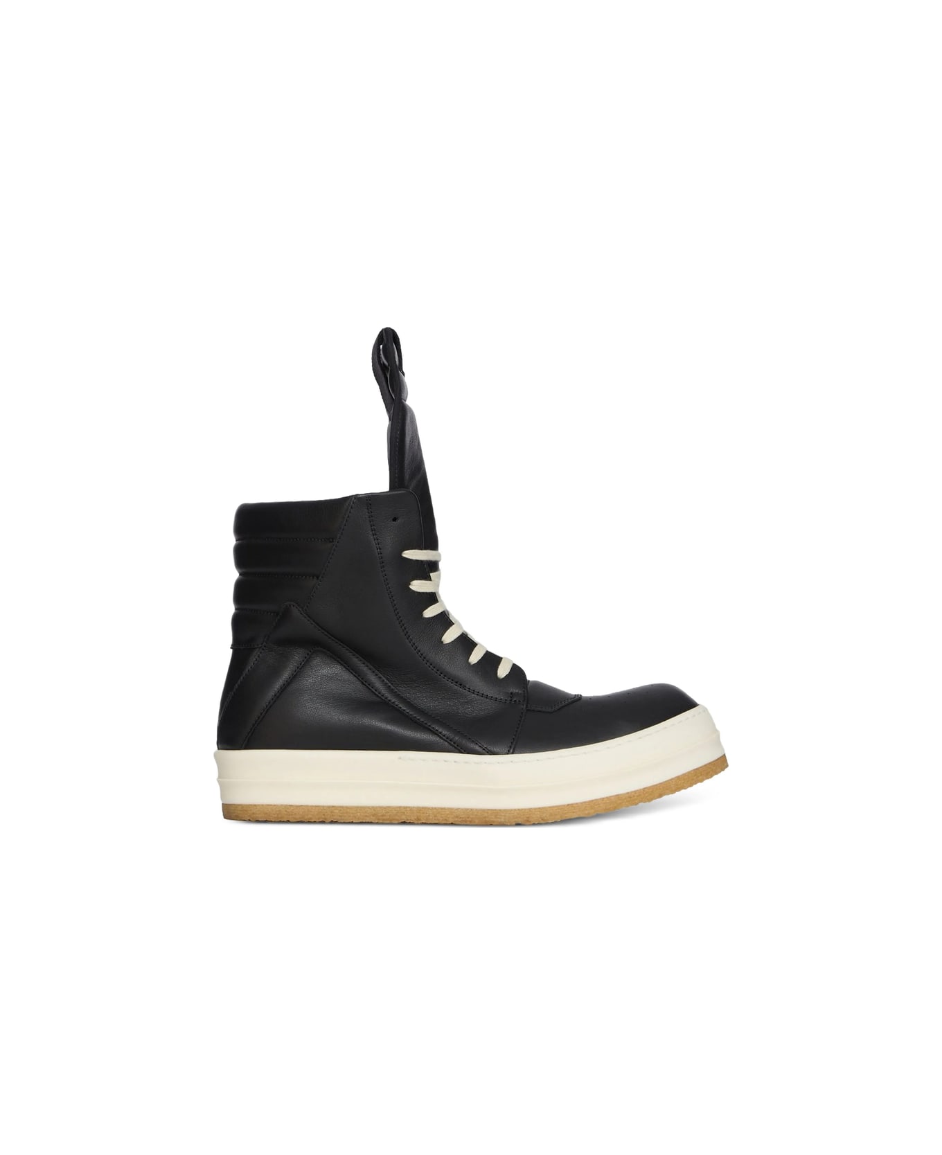 black leather upper padded high top lace-up fastening rubber sole off-white midsole