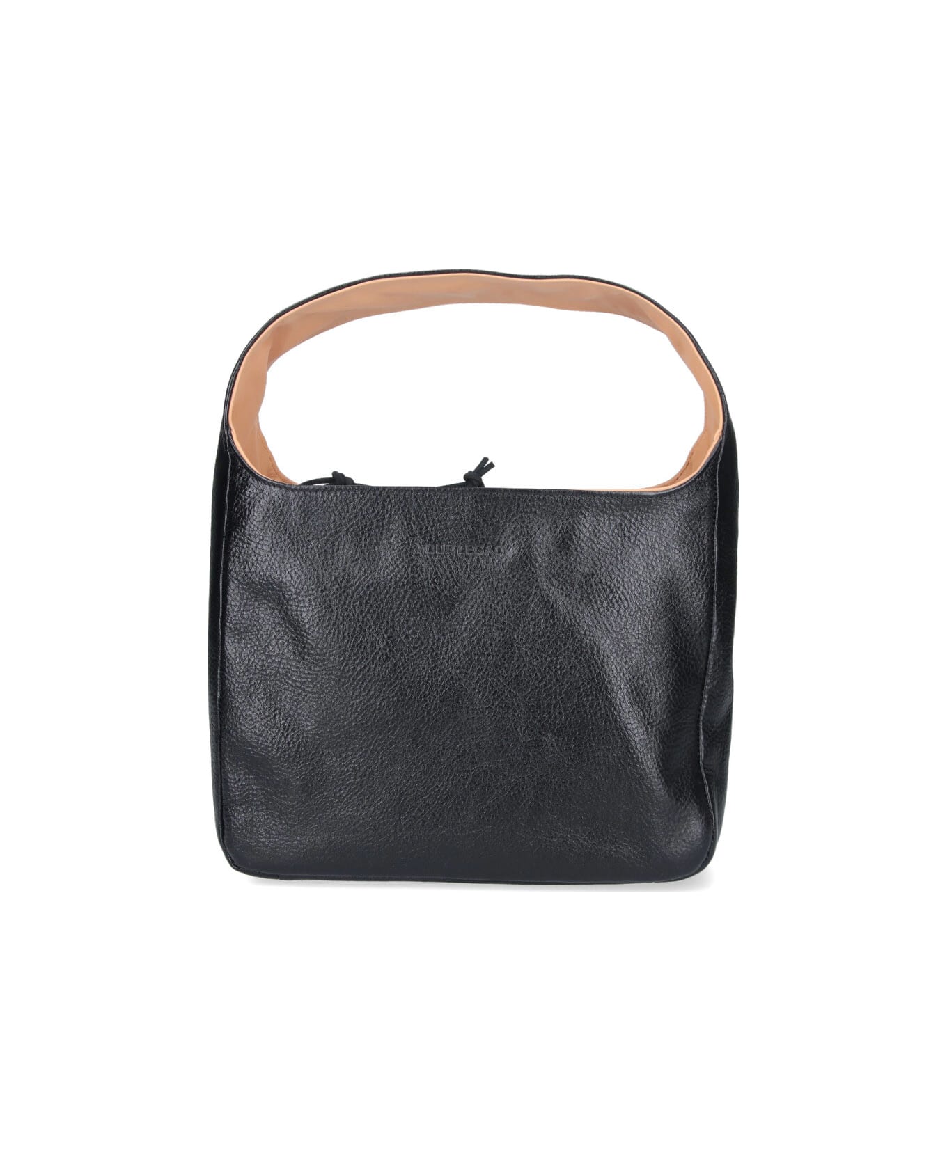 Black calf leather Brick handbag, top handle, zip closure, zipper zipper laces, tone-on-tone embossed logo on the front, inner flat pocket, single main inner compartment.