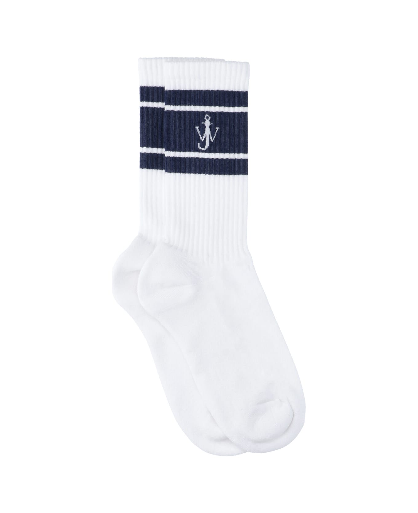 J. W. Anderson anchor socks in white stretch cotton blend with contrasting top band and anchor logo.