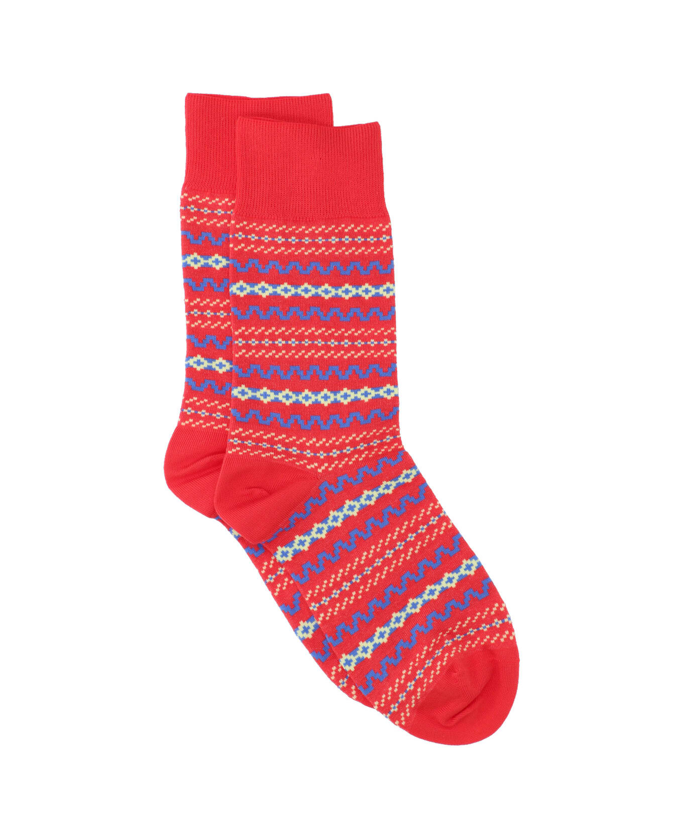 J. W. Anderson 'Fairisle' socks in red cotton blend with all-over contrasting jacquard pattern.