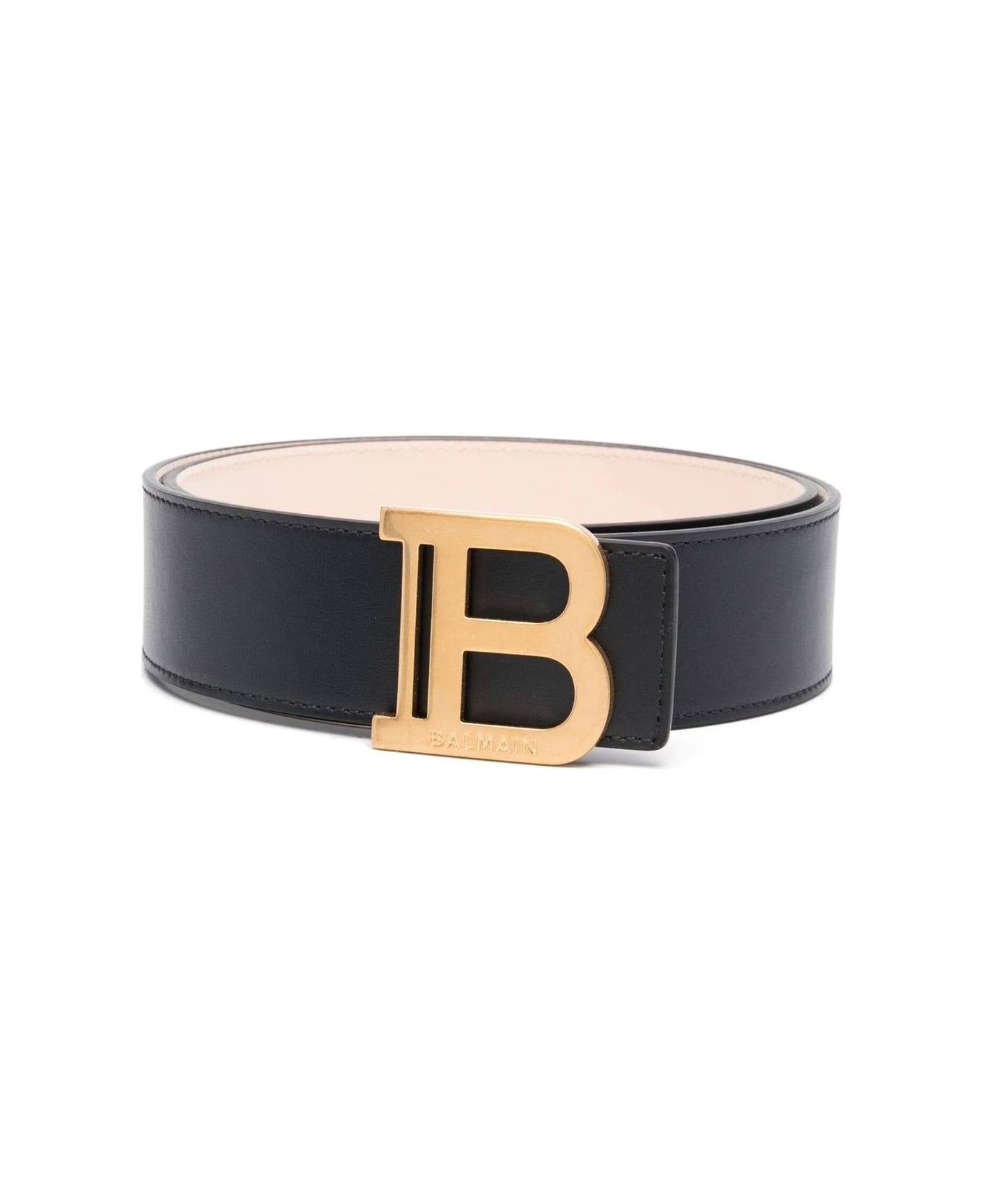 Balmain belt made of smooth black leather and characterized by square toe, single loop and 'B' buckle in metal with golden finish. Adjustable fit. Height: 4 cm. Composition: 100% Leather