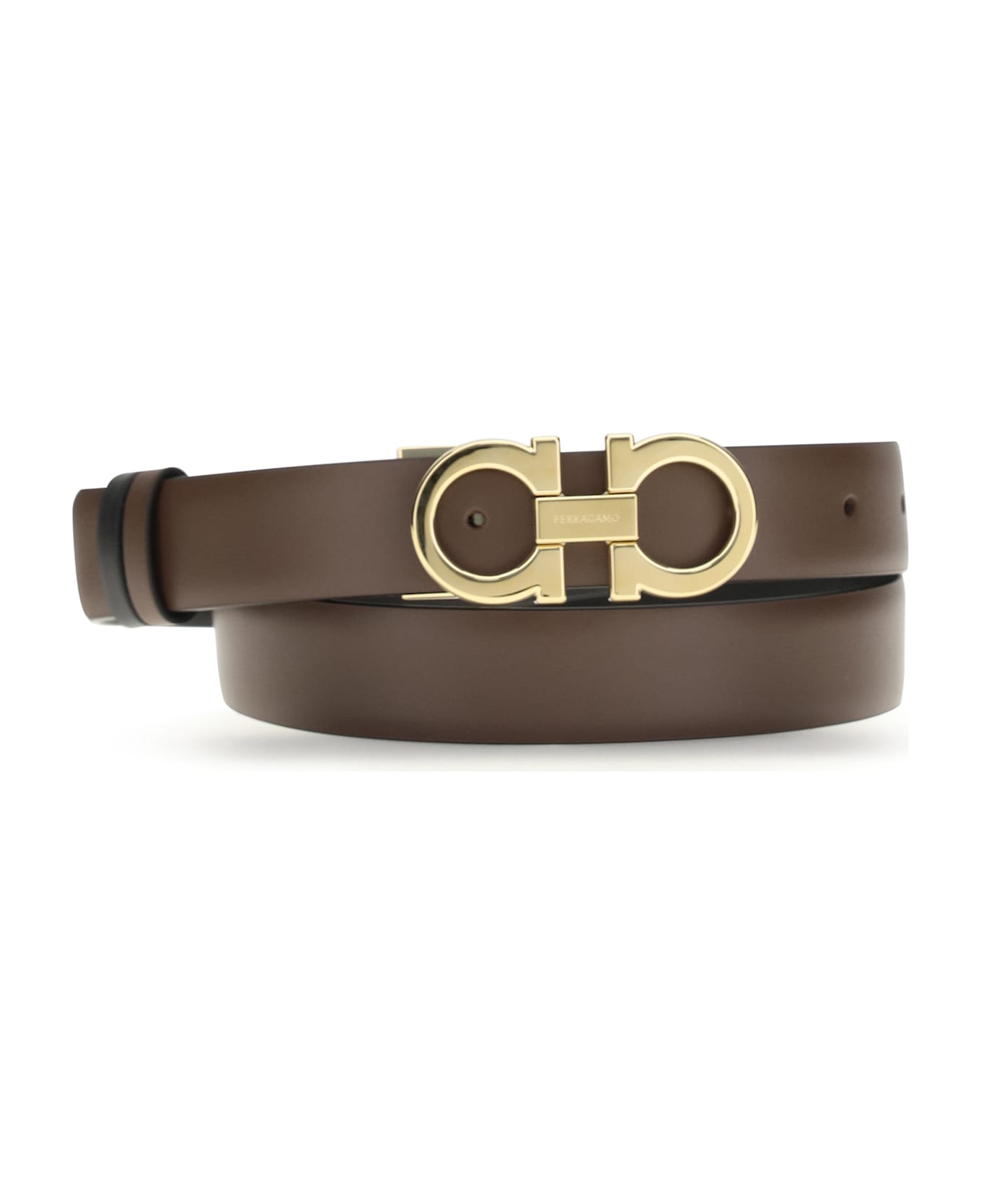 The gancini reversible belt by ferragamo is an elegant and versatile accessory, perfect for adding an extra touch of femininity to your look. made with naturally grained calfskin, this belt stands out for its reversible and two-tone design, allowing you to pair it with different outfits. the double gancini buckle completes the design, adding an exclusive and sophisticated touch. a must-have for those looking for style and functionality in a single accessory. Composition: 100% % Calf Leather Bos Taurus