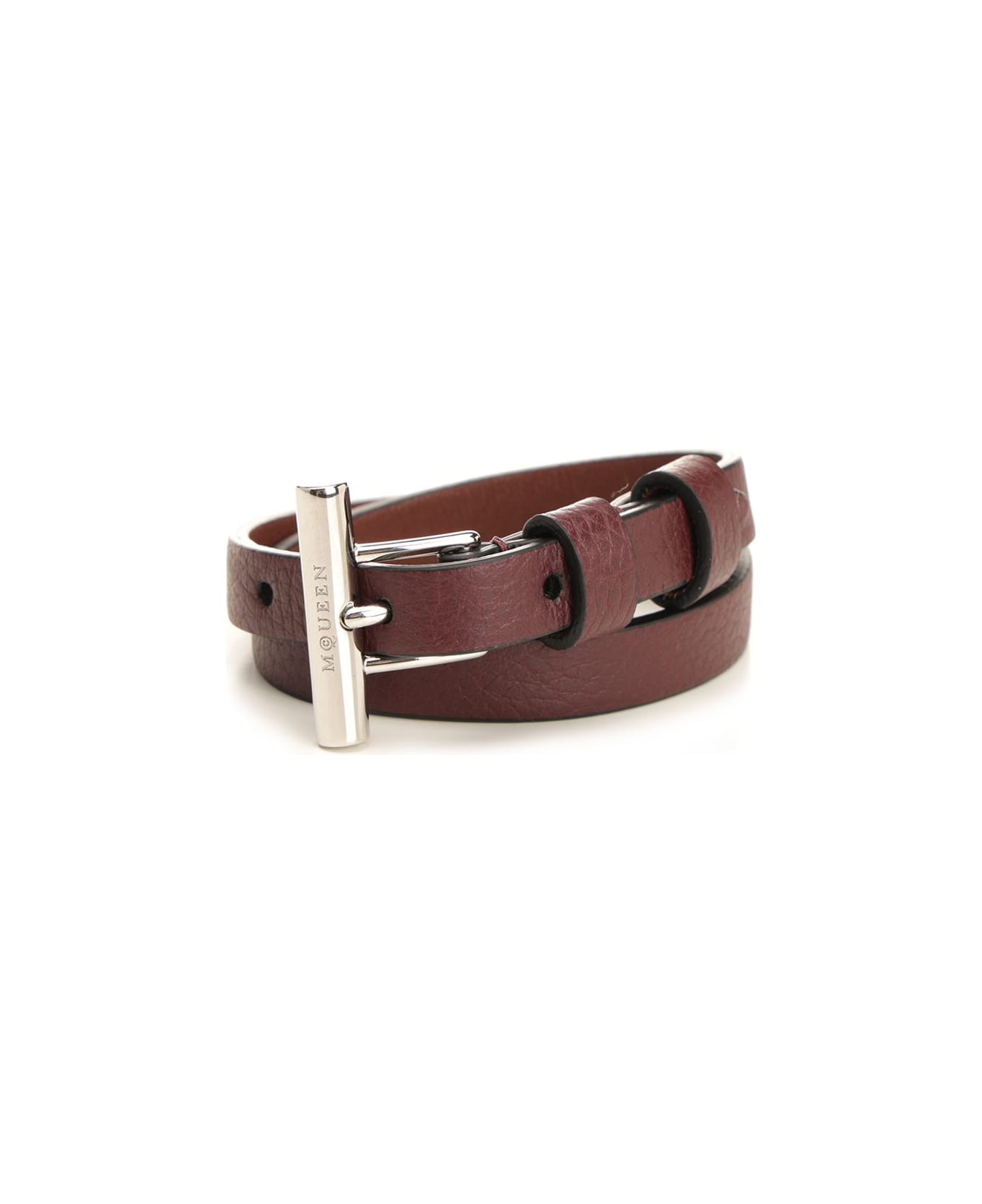 Low waist belt from Alexander McQueen in full grain leather with silver metal T buckle with engraved McQueen logo. Composition: BRASS CALF SKIN