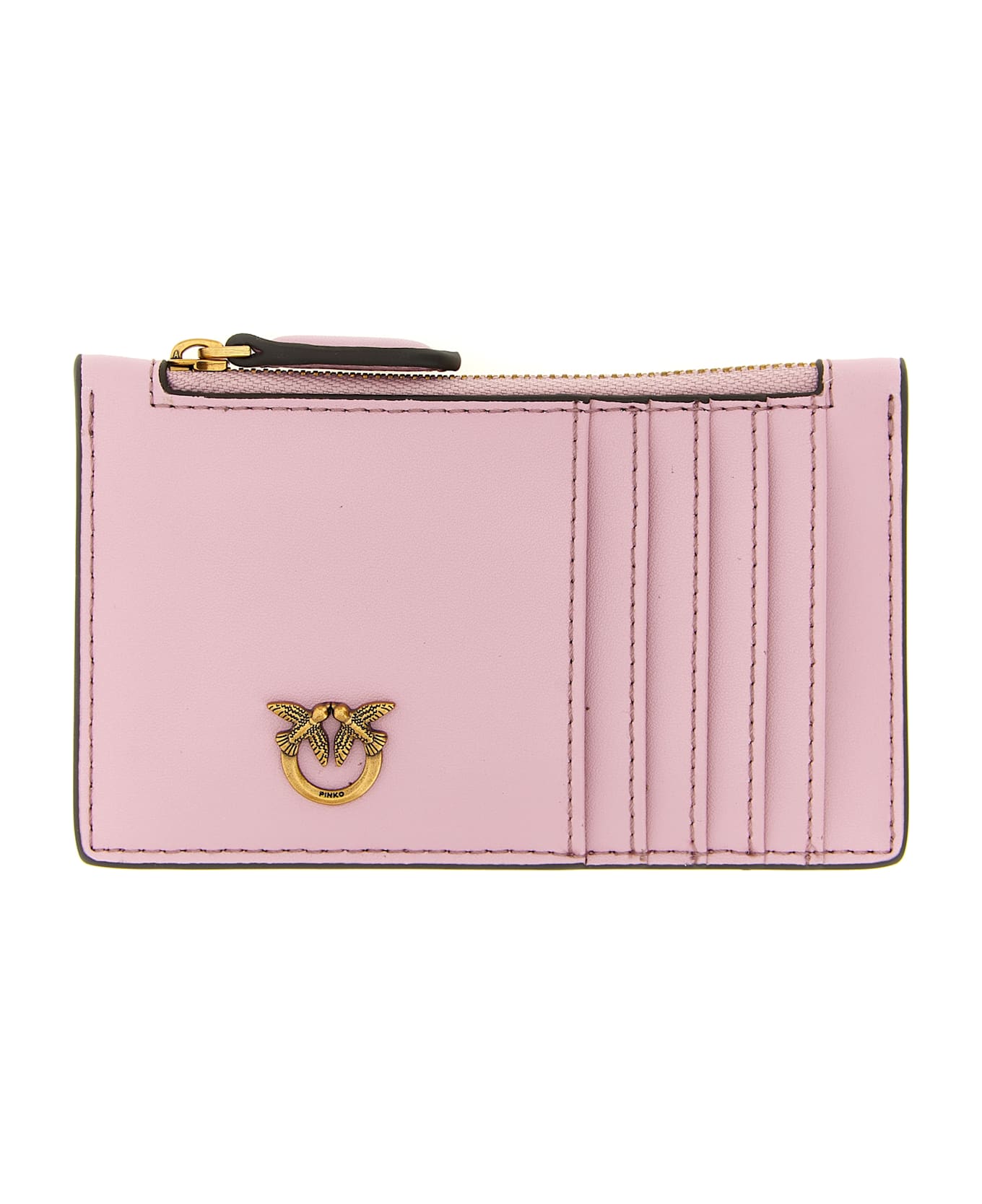 'Airone' silk leather card holder, metal 'Love Birds Diamond Cut' logo plaque on the front, top zip closure, polycotton lining.