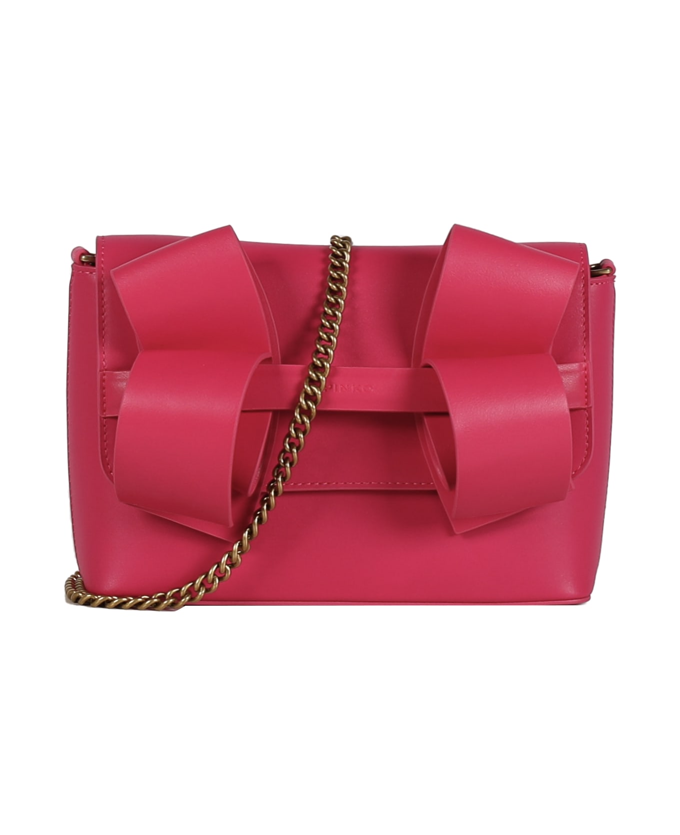 Fuchsia -antique gold Aika Shoulder Bag from Pinko -Bag with bow detail -Magnetic closure -Removable shoulder strap with chain -Measurements: 22x15x6 cm -Colour: Fuchsia -100% Cowskin