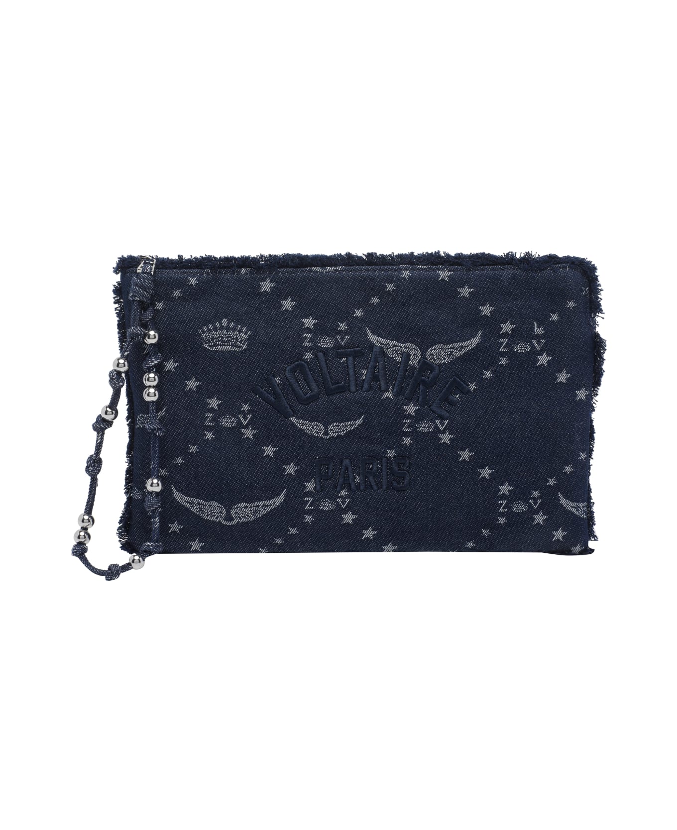 Zadig&Voltaire blue Angel pouch, zip closure, inner open pocket, 4 slots, wrist strap, all over monogram logo, embroidered logo on the front Composition: 51% Cotton, 49% Polyester