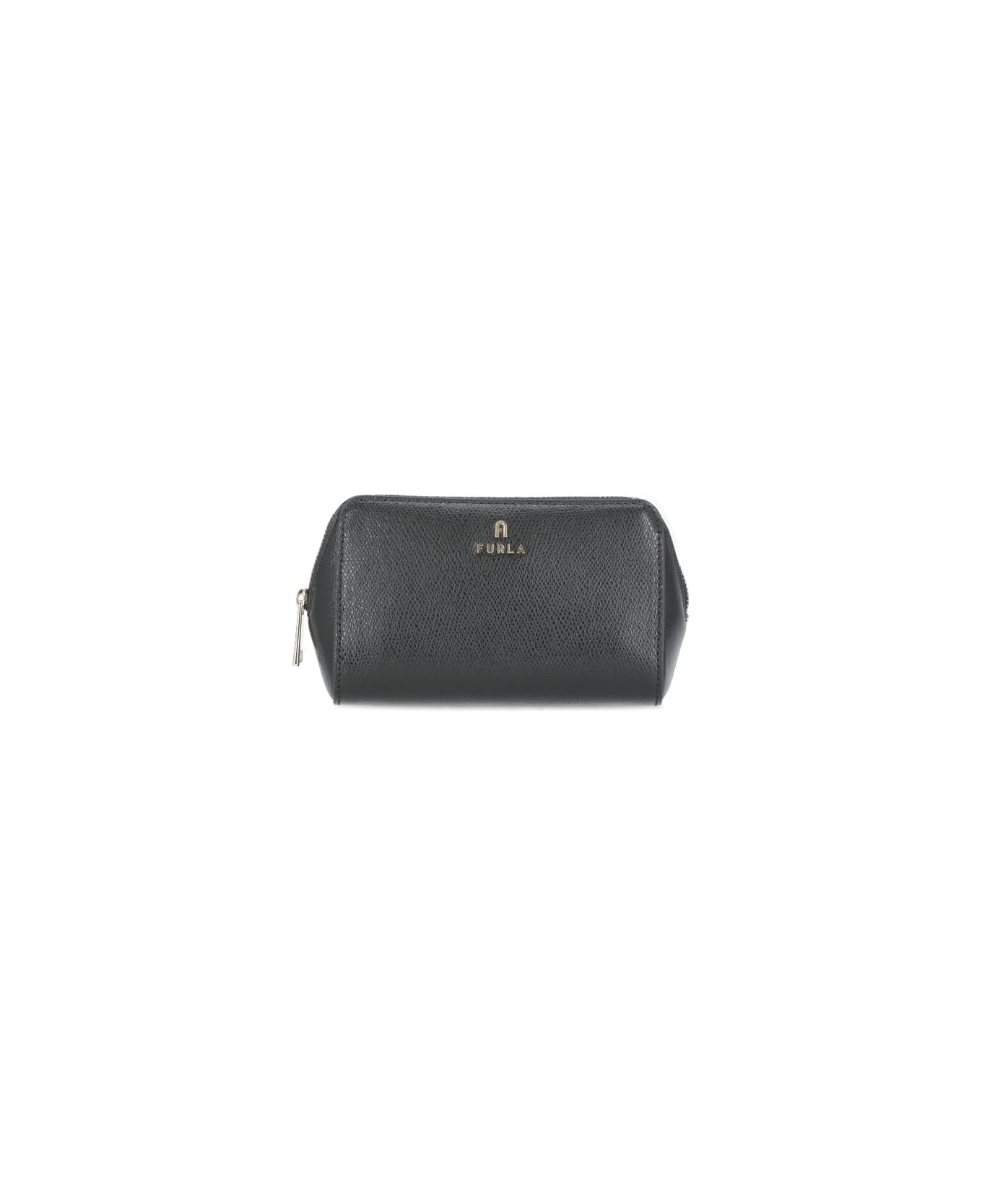 - Black Furla leather pochette for woman - Welt interior pocket - Front metal logo - Zip fastening