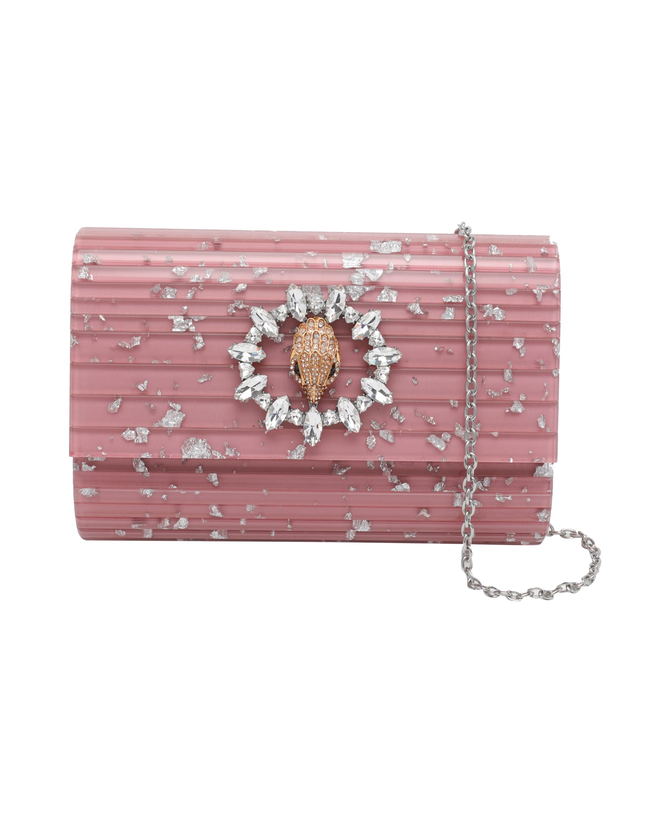 Kurt Geiger pink Eagle clutch, magnetic closure, inner open pocket, chain shoulder strap