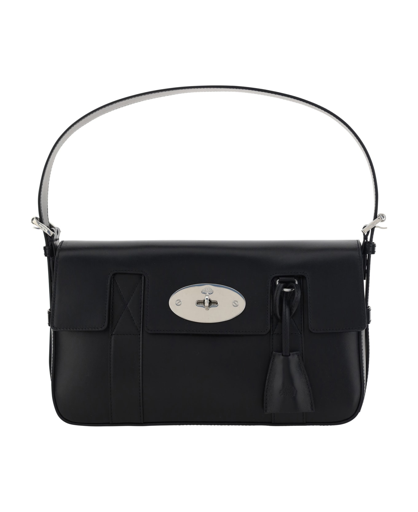Calfskin east west bayswater handbag by mulberry, front flap and swivel closure, key ring attached to the front with hidden padlock, adjustable flat shoulder strap, a main compartment, contrasting lined interior, iconic logo engraved on the swivel and padlock.