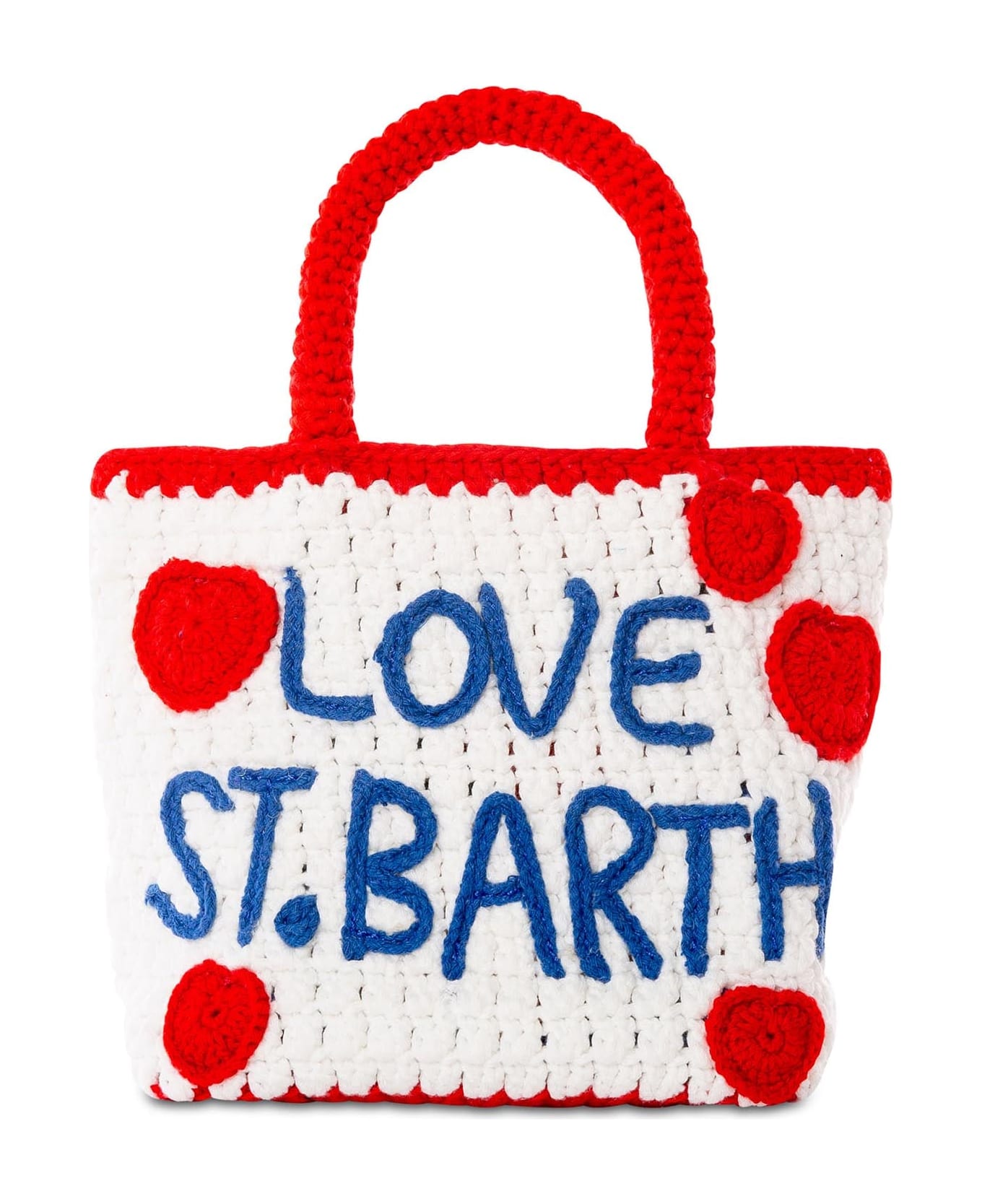 Heart embroidery crochet bag Love St. Barth lettering logo Sizes: 24 x 22 x 8 cm