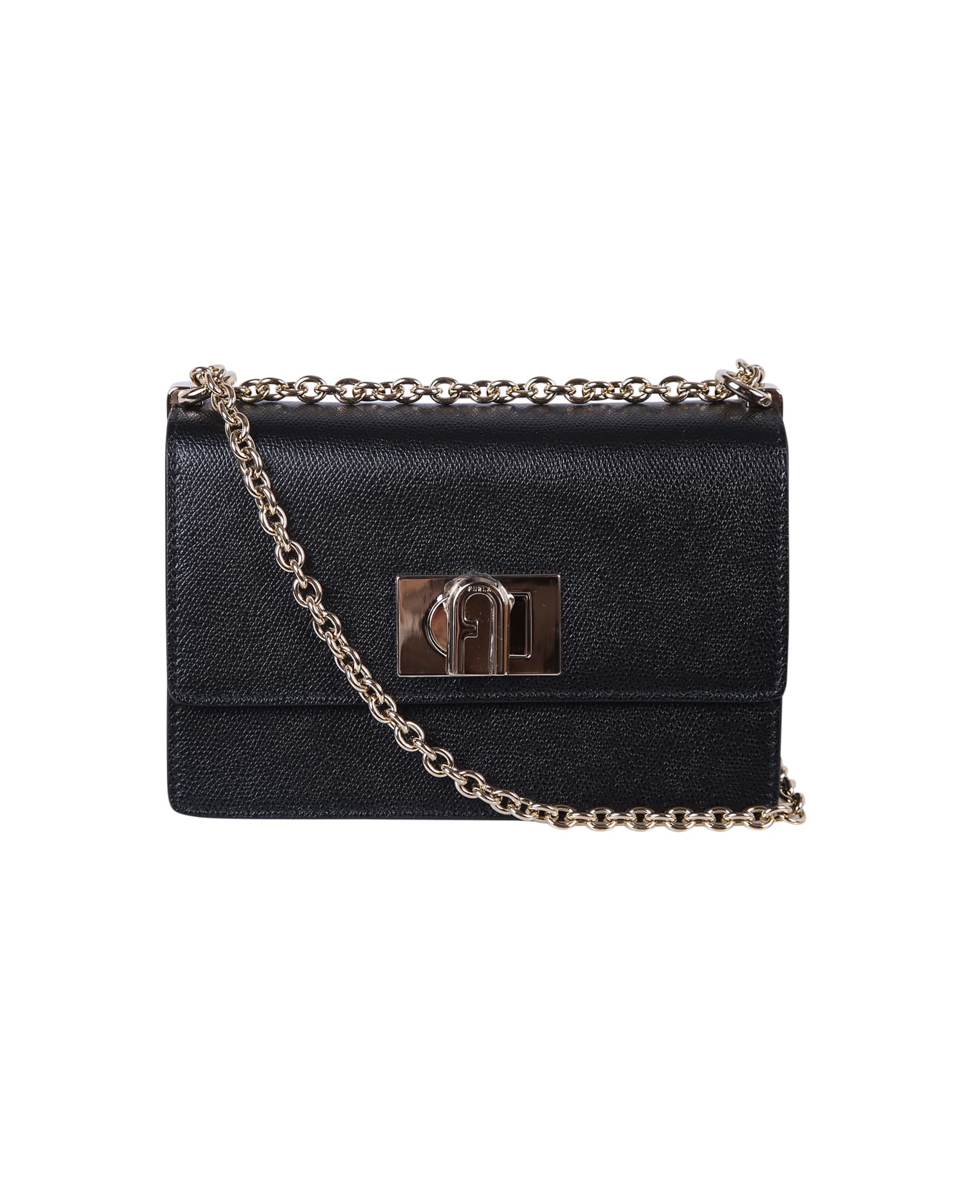 1927 mini bag from Furla: black 1927 mini bag with flap and pivot closure, chain strap. W: 20 cm X H: 14 cm X D: 8 cm, Strap: 56