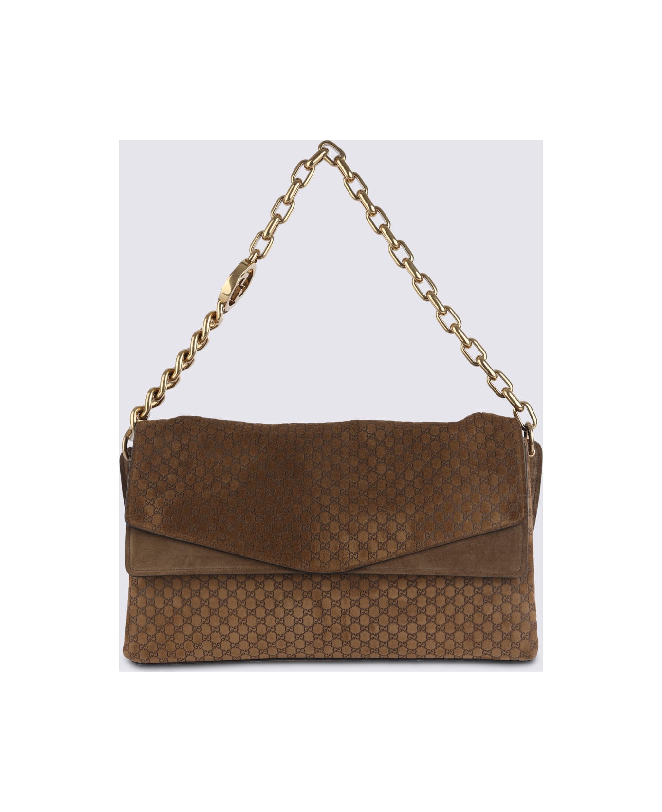 Brown leather shoulder bag from Gucci featuring top handle, main compartment, button fastenign, logo and gold tone hardware. Composition: _, 100% Calf Skin