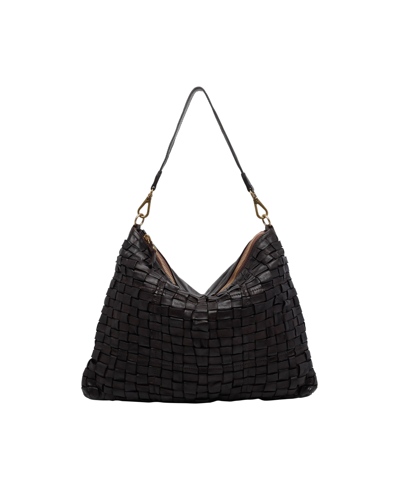 Campomaggi black Carla shoulder bag, zip closure, inner zip pocket and one open pocket, one removable handle, adjustable and removable shoulder strap, large model