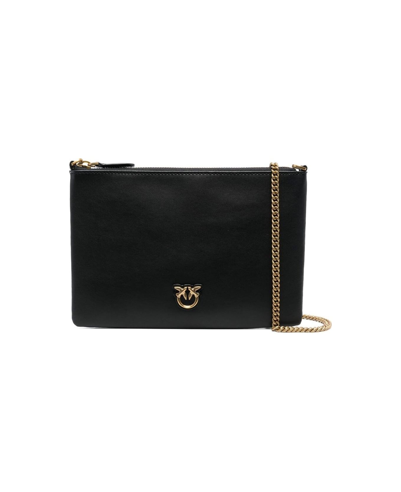 'flat Love Bag' Black Shoulder Bag With Logo Patch In Smooth Leather Woman