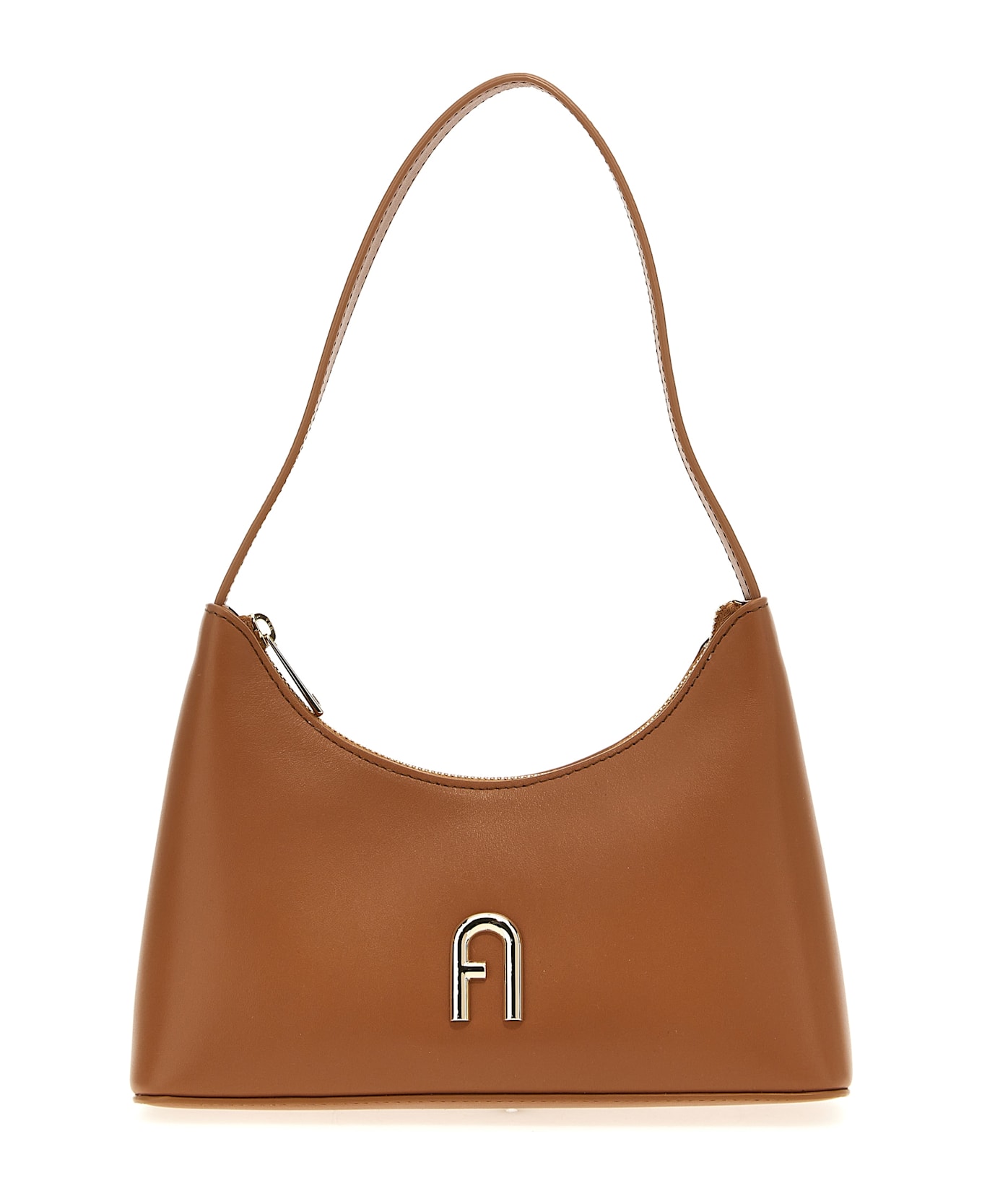 'Furla Diamante' mini leather shoulder bag with front metal logo, zip closure, fixed handle.