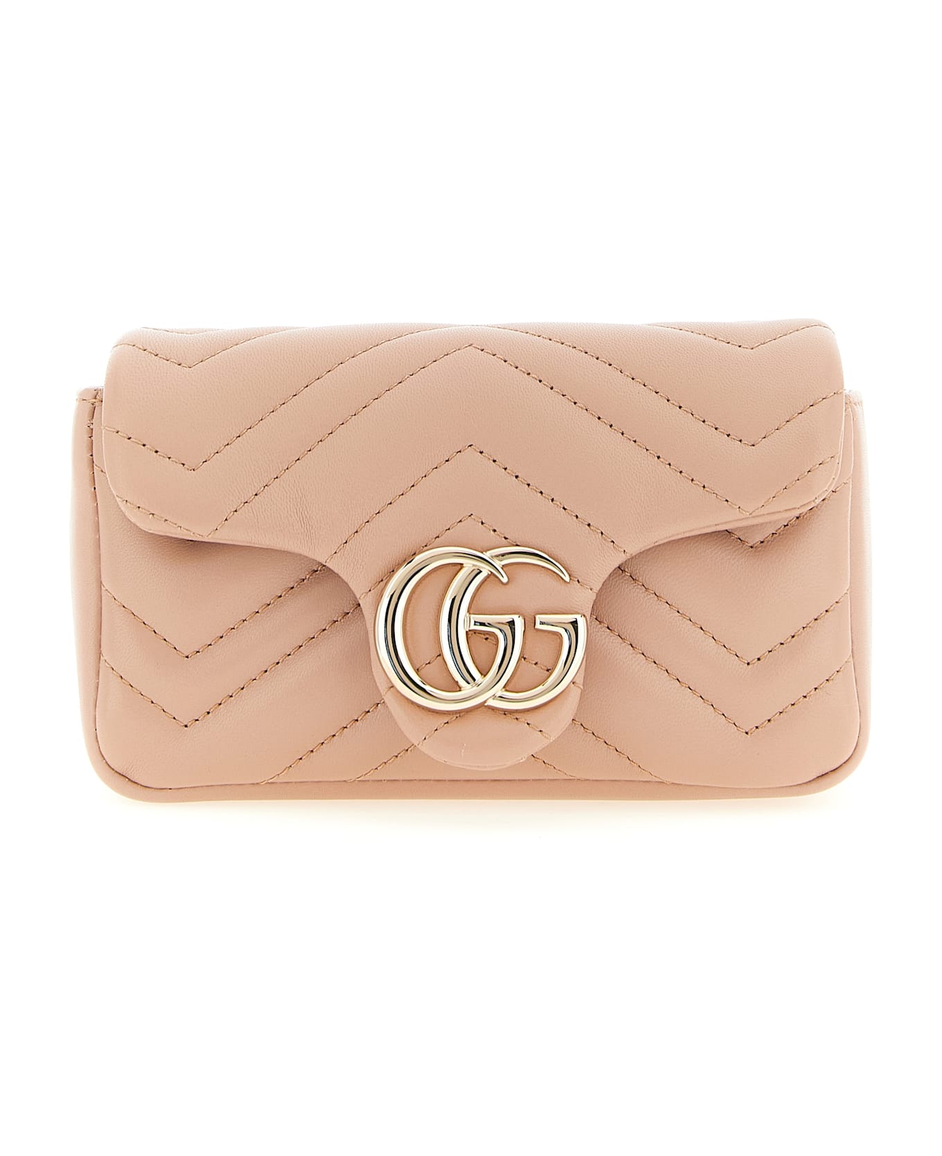 'GG Marmont' mini shoulder bag in chevron pattern matelassé nappa leather, tone-on-tone fabric lining, magnetic flap closure with front metal 'Doppia G' detail, removable chain shoulder strap. Composition: 100% lamb leather (Ovis aries)