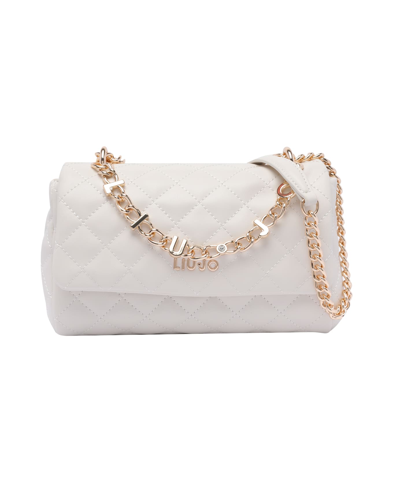 Liu Jo cream Logo crossbody bag, push lock closure, adaptable chain sliding closure, frontal golden logo